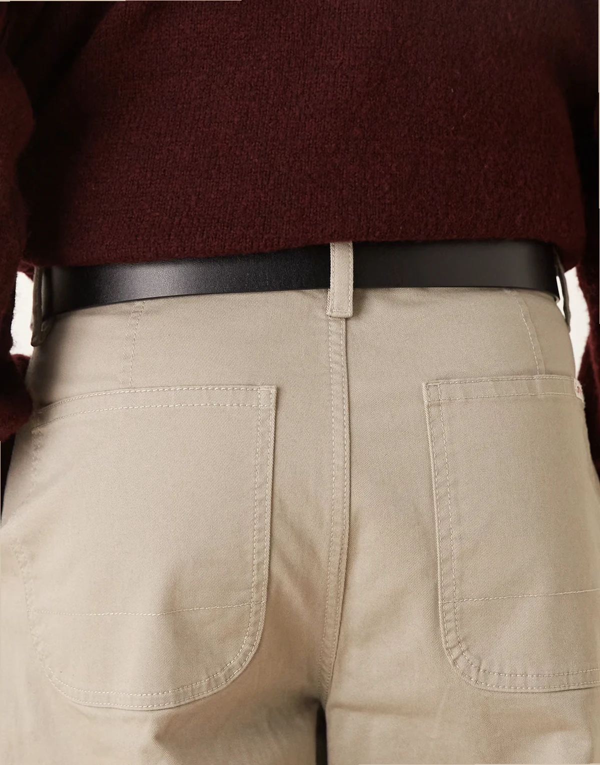 – Kremowy skórzany pasek do jeansów z klamrą do noszenia w talii lub na biodrach