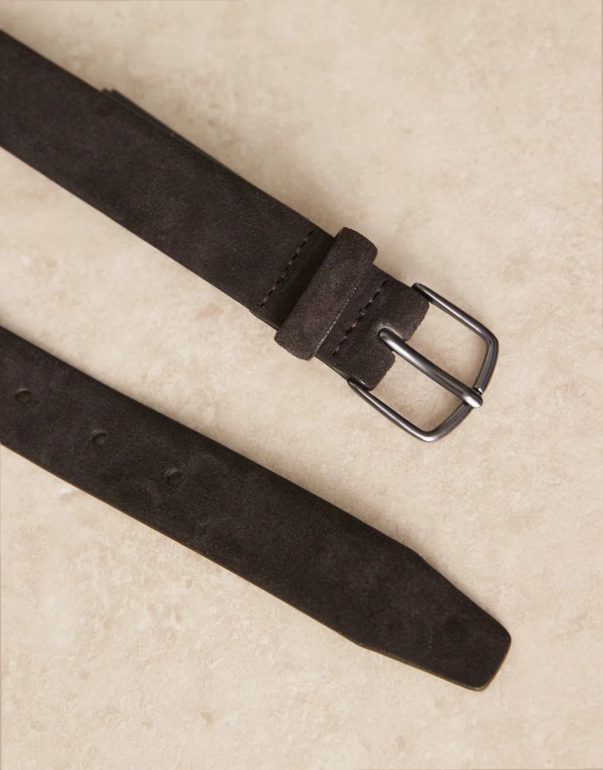 – Brązowy skórzany pasek z zamszowym wykończeniem i złotą klamrą