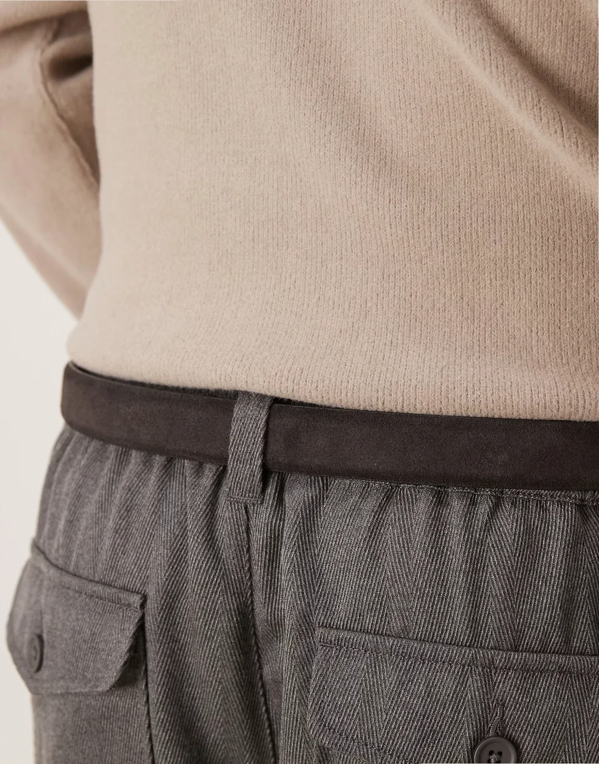– Kremowy skórzany pasek do jeansów z klamrą do noszenia w talii lub na biodrach