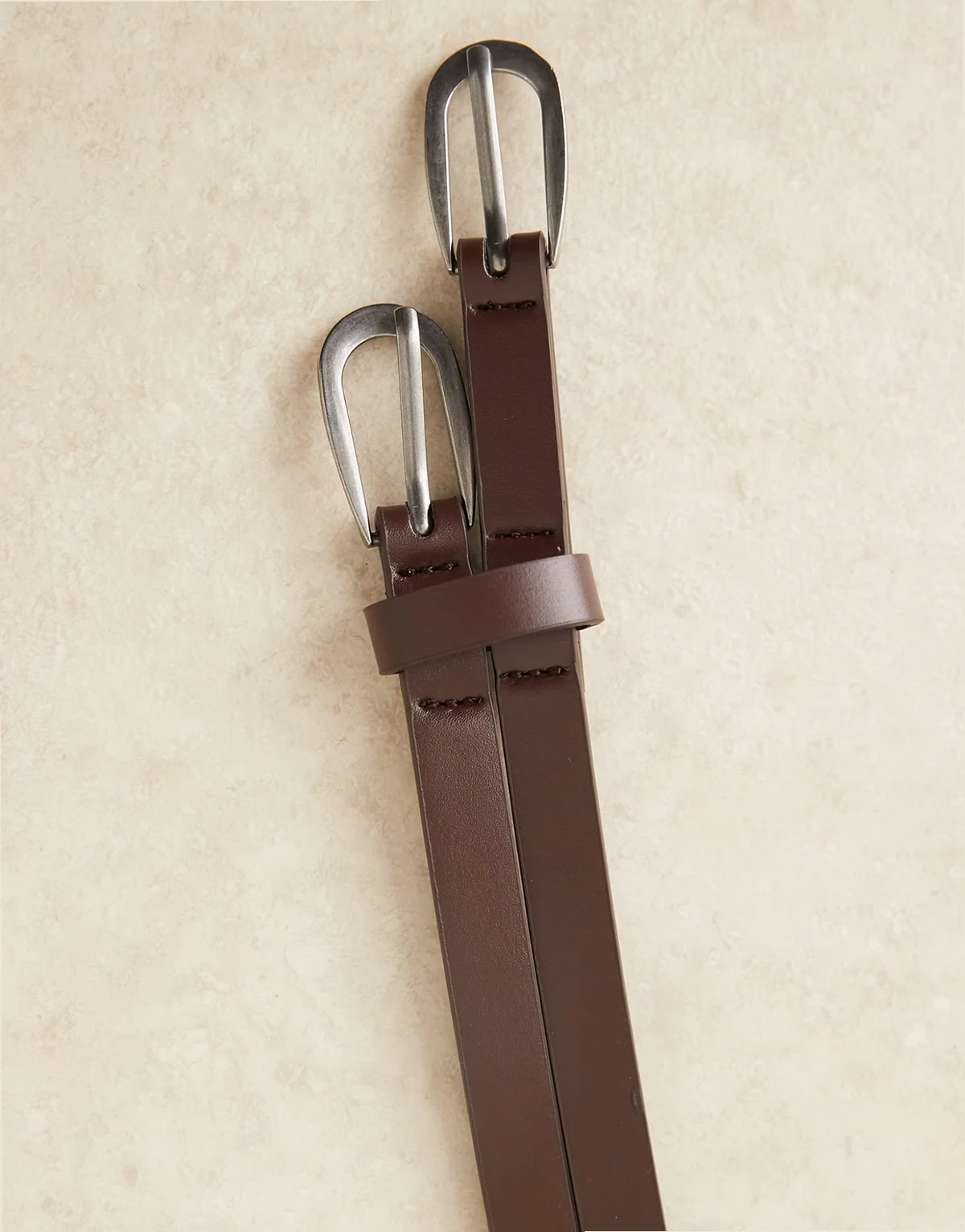 – Brązowy wąski podwójny pasek z imitacji skóry