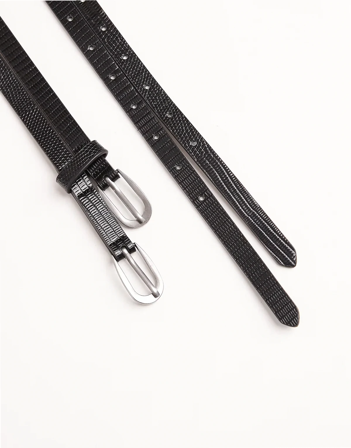 – Czarny wąski podwójny pasek z imitacji skóry krokodyla