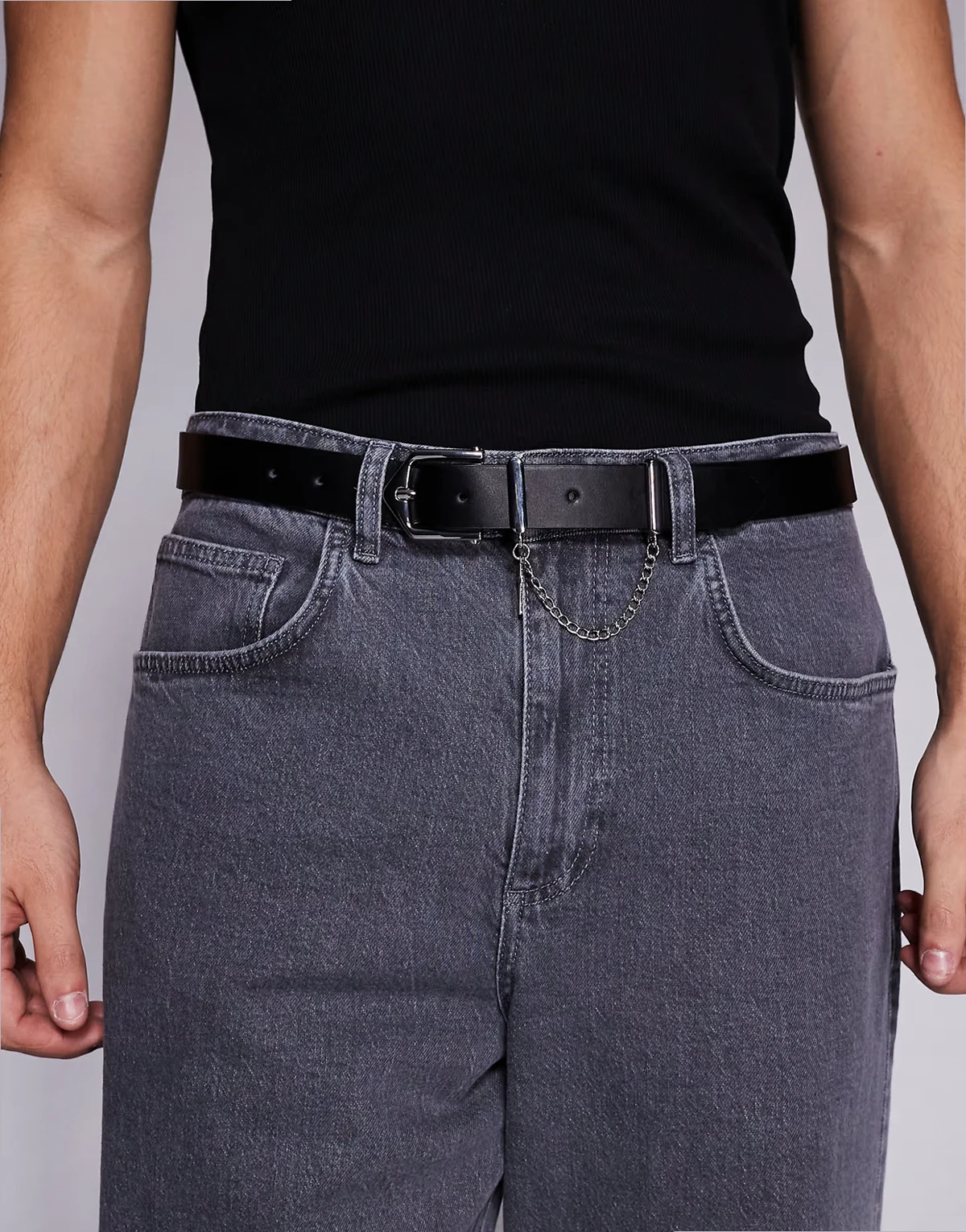 – Czarny pasek z imitacji skóry z kwiatowymi ćwiekami w kowbojskim stylu