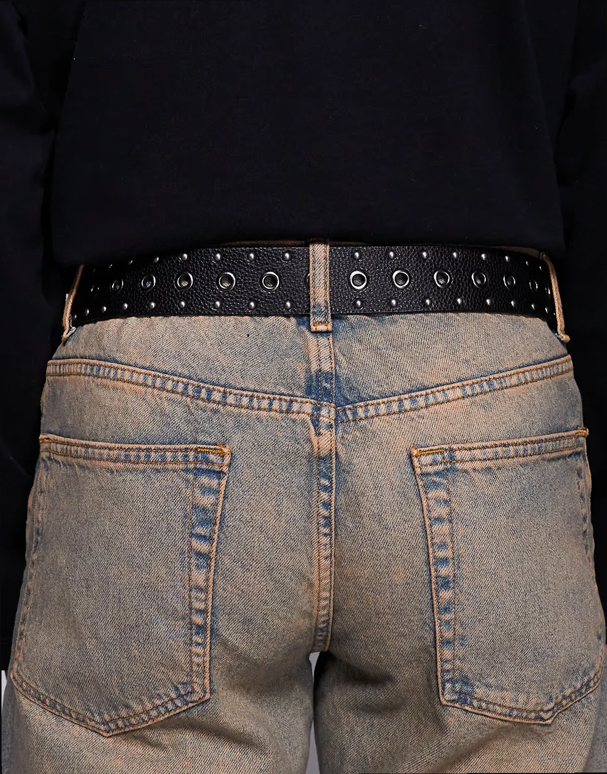 – Czarny pasek z imitacji skóry z kwiatowymi ćwiekami w kowbojskim stylu