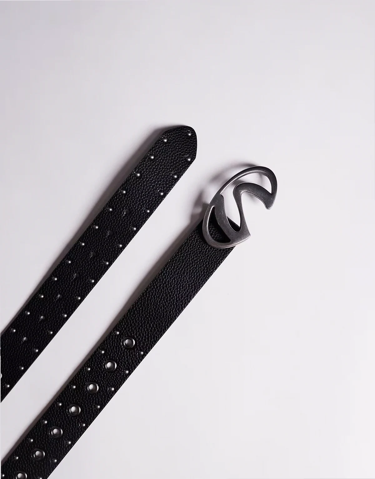 – Czarny pasek z owalną klamrą z efektem stopienia i ozdobnymi otworami