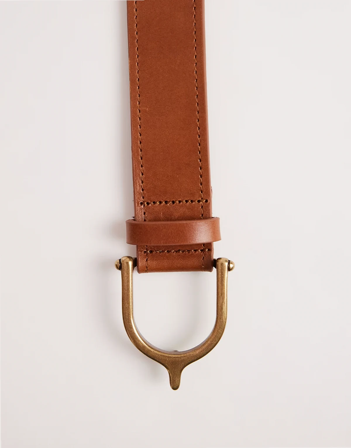 – Wąski brązowy pasek z naturalnej skóry ze złotą klamrą