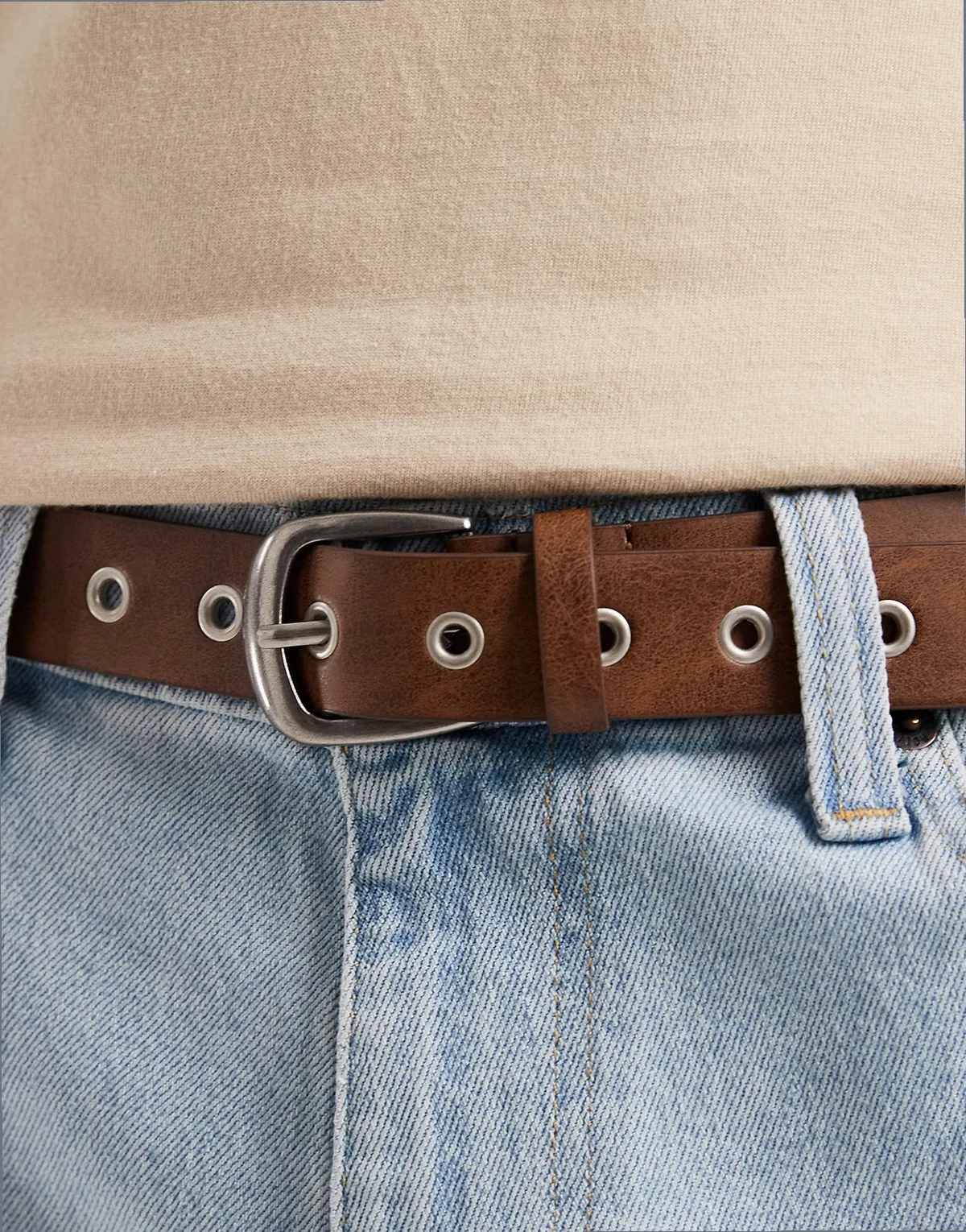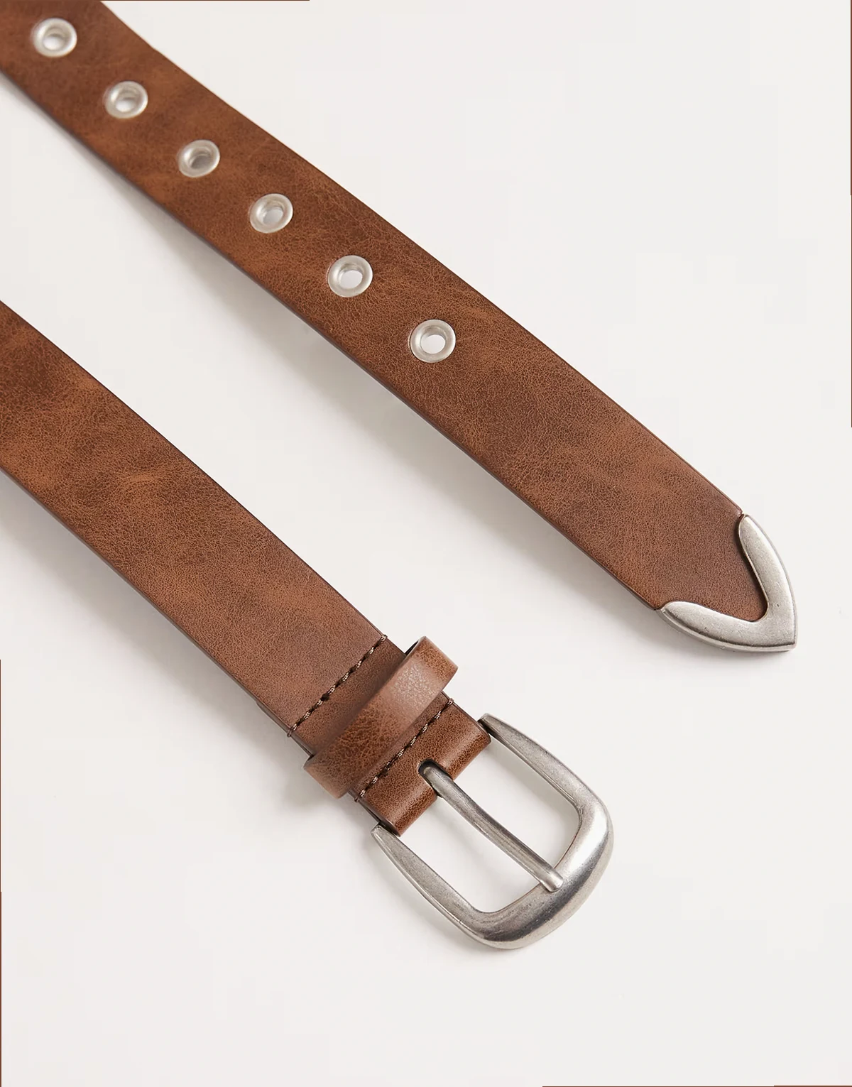– Brązowy pasek z metalowymi oczkami i metalową końcówką