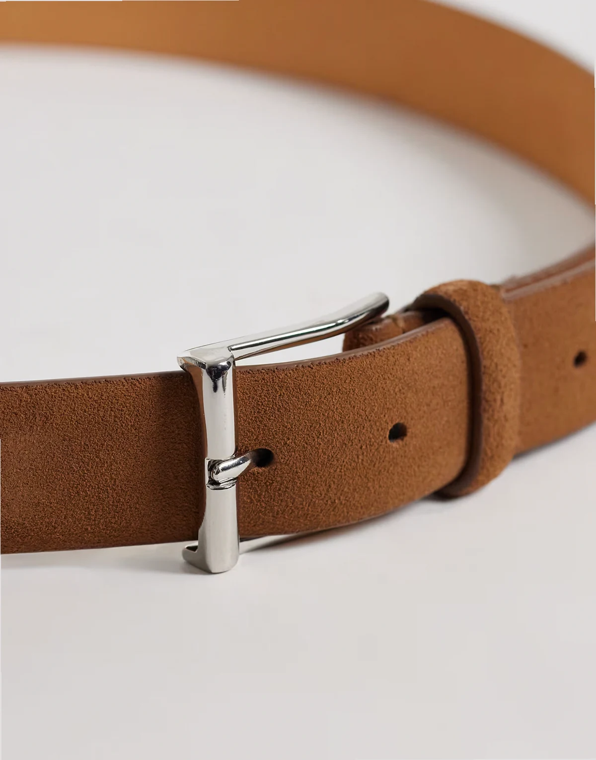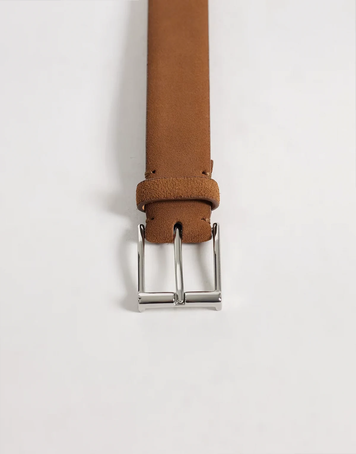 – Jasnobrązowy pasek ze skóry ze srebrną sprzączką