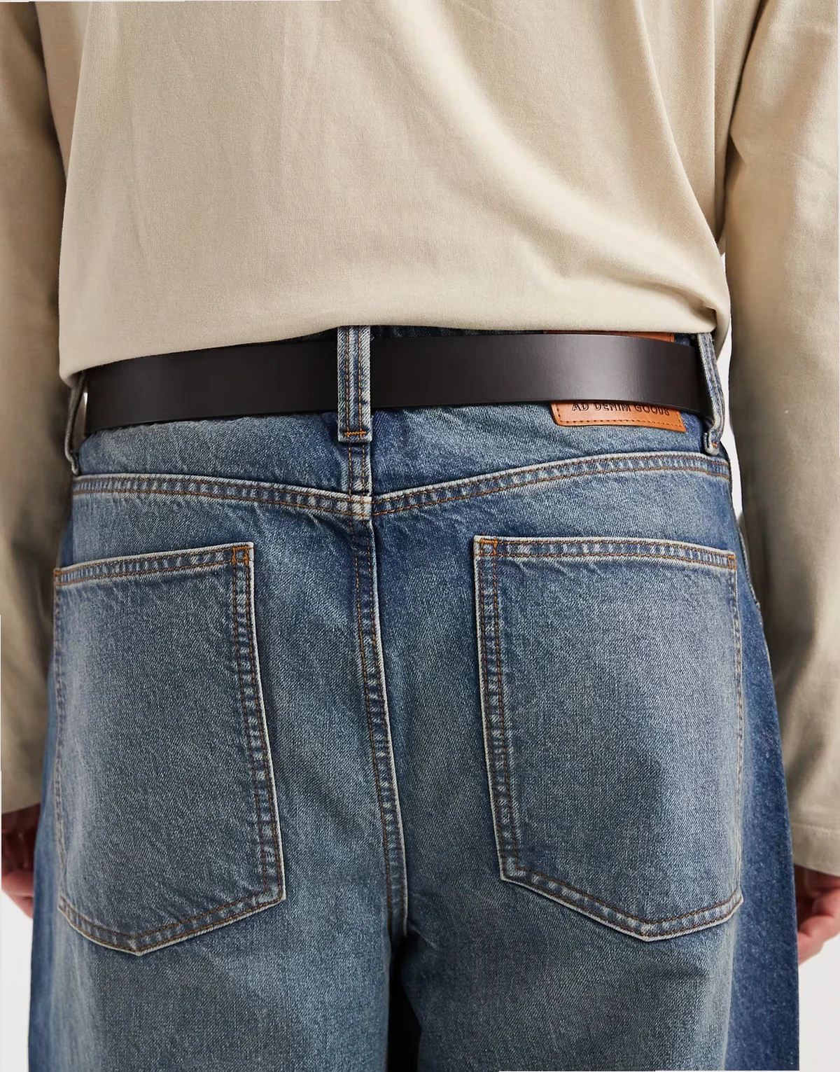 – Kremowy skórzany pasek do jeansów z klamrą do noszenia w talii lub na biodrach