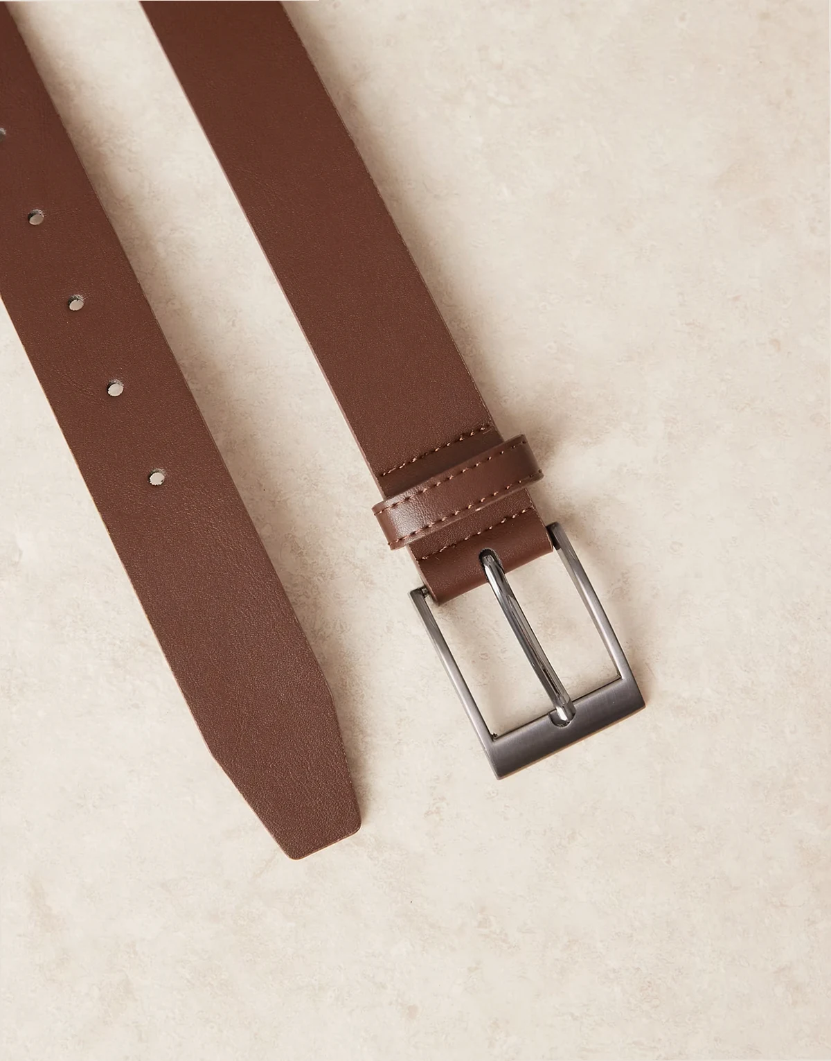 – Brązowy pasek z imitacji skóry z grafitową sprzączką