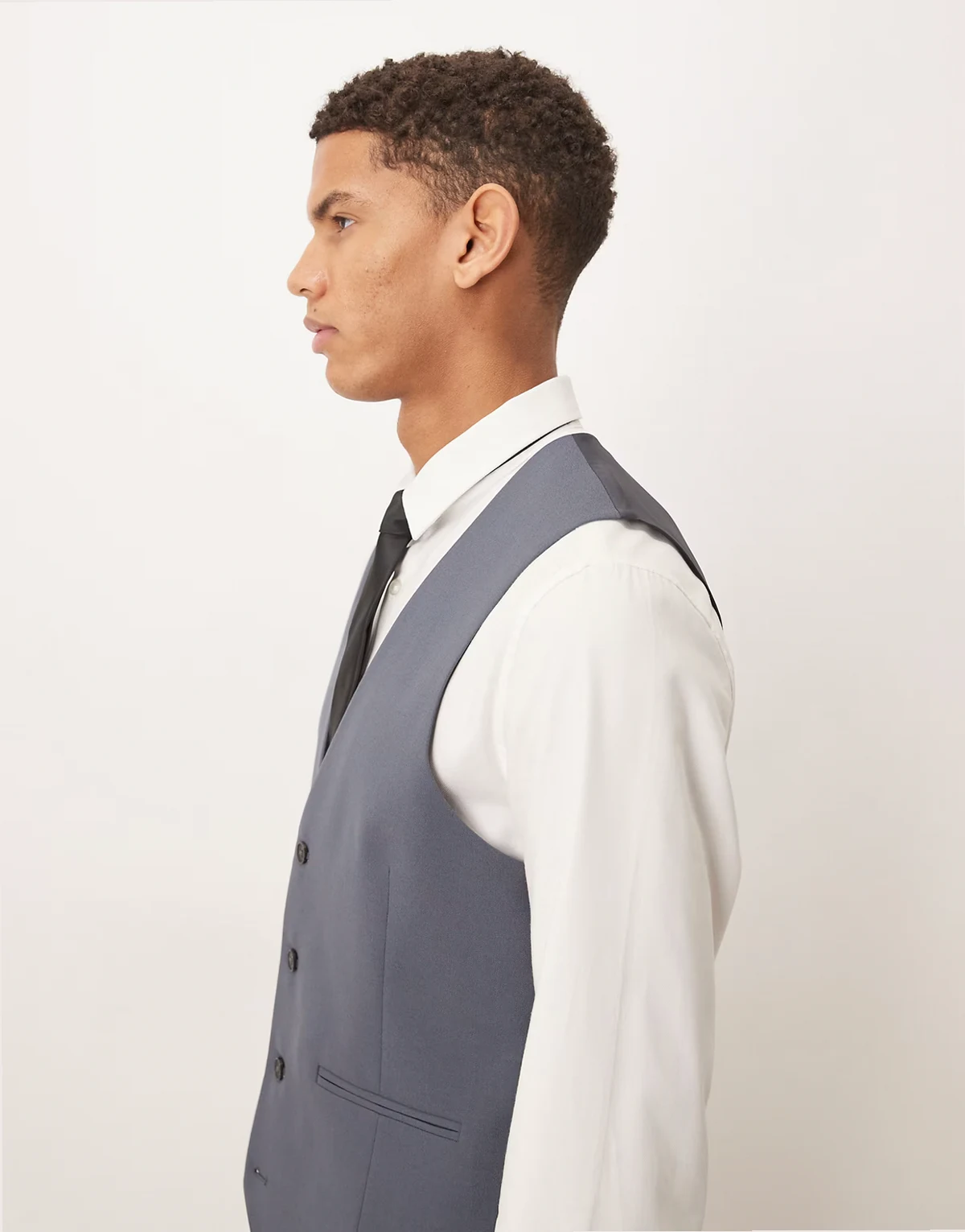 – Ciemnoniebieska dopasowana kamizelka garniturowa