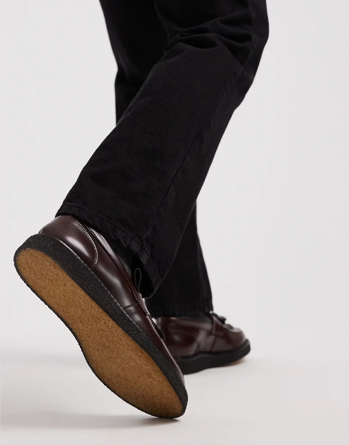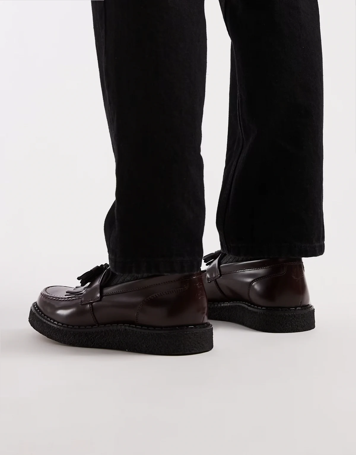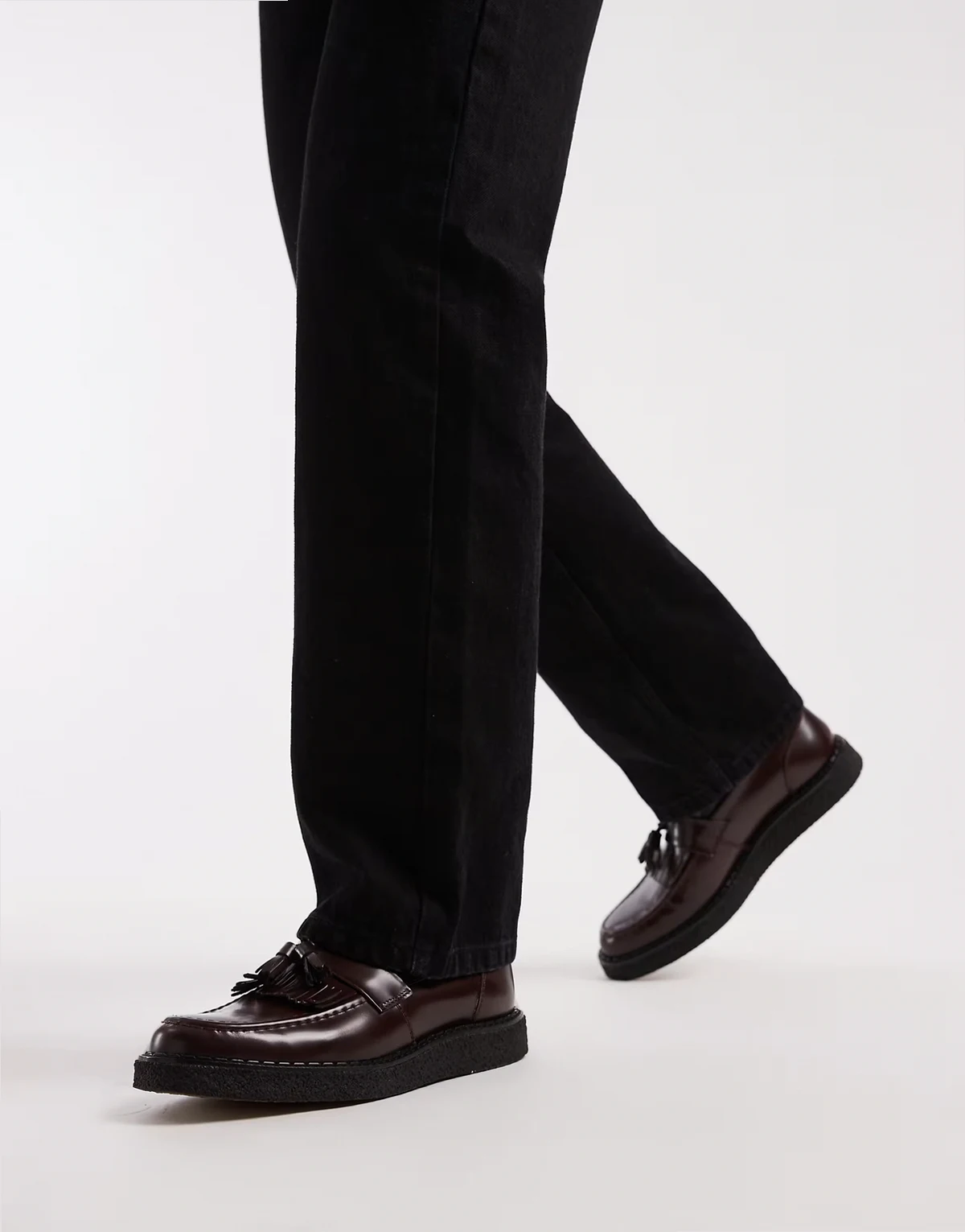 4. x George Cox – Bordowe skórzane loafersy z frędzlami