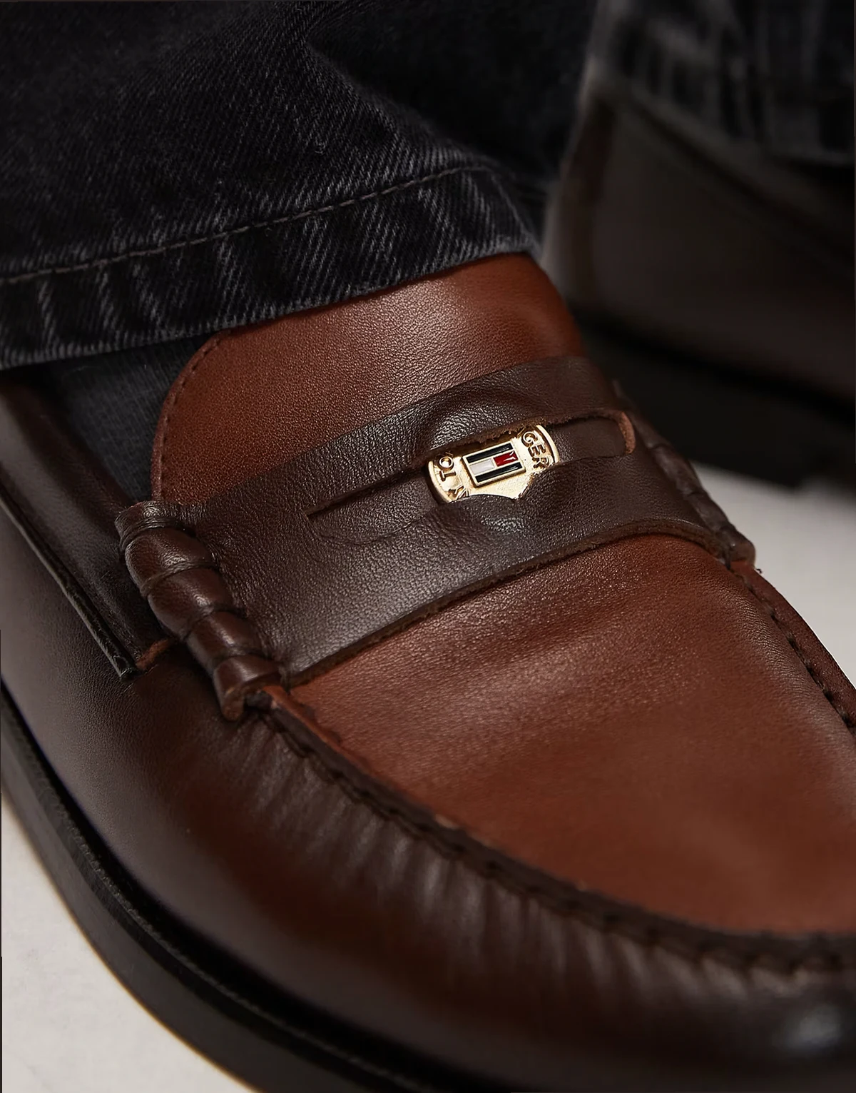 – Loafersy penny w dwóch odcieniach brązu