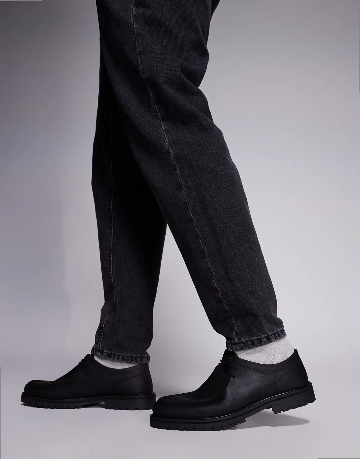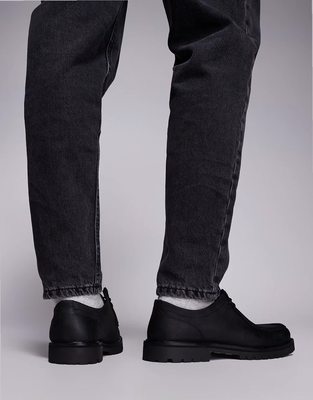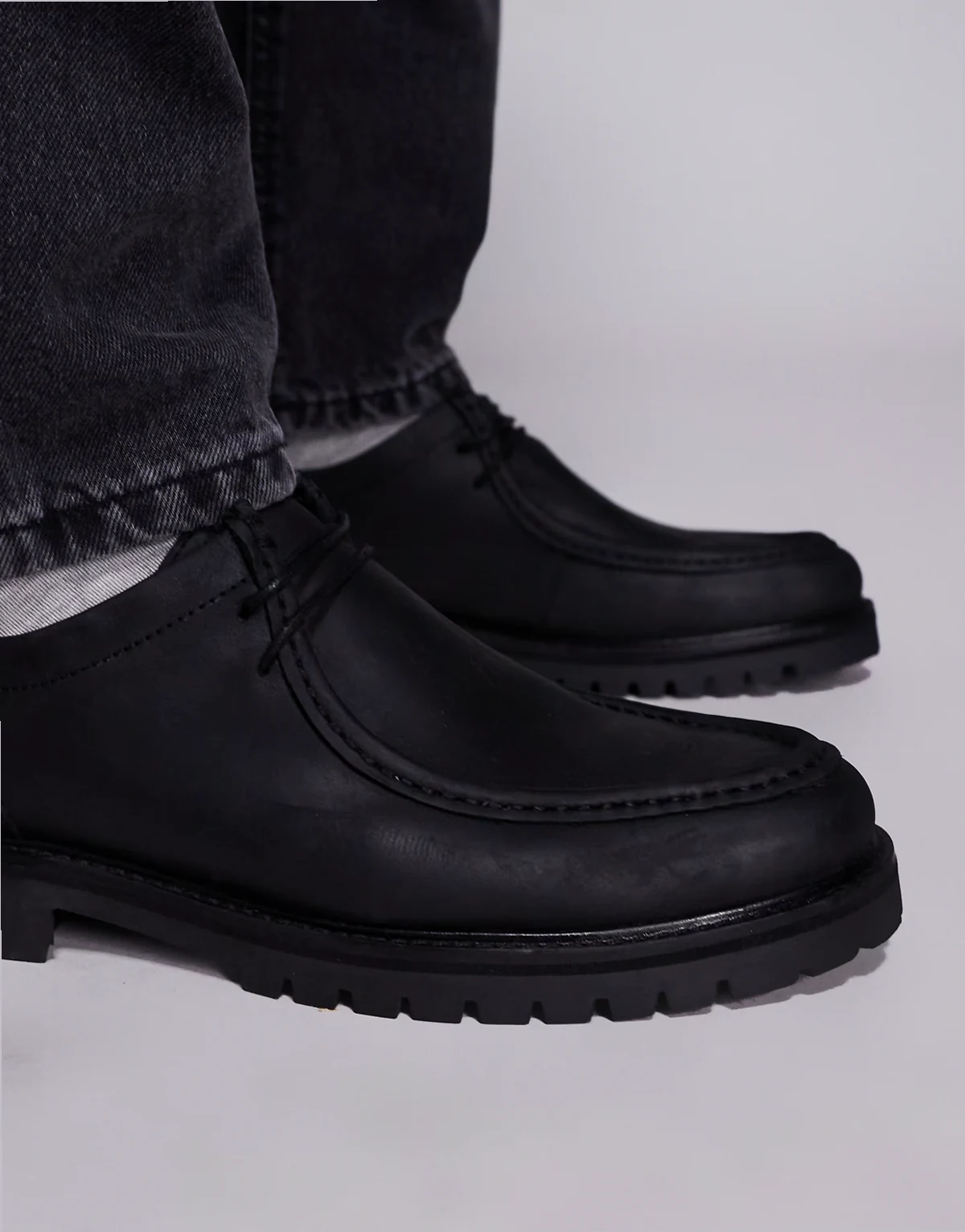 – Presley – Sznurowane czarne loafersy skórzane na grubej podeszwie