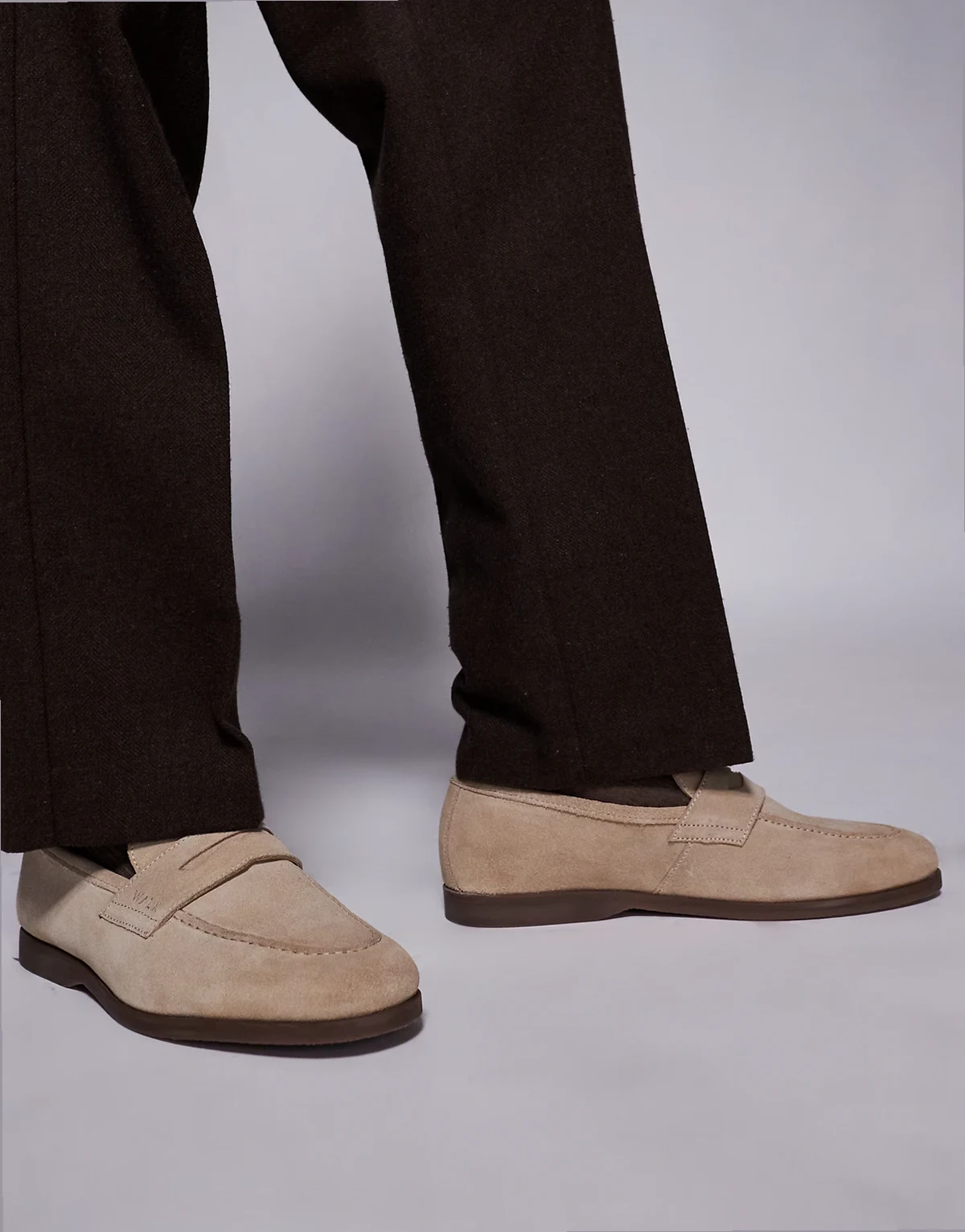 – Angelo – Szarobeżowe zamszowe loafersy typu saddle