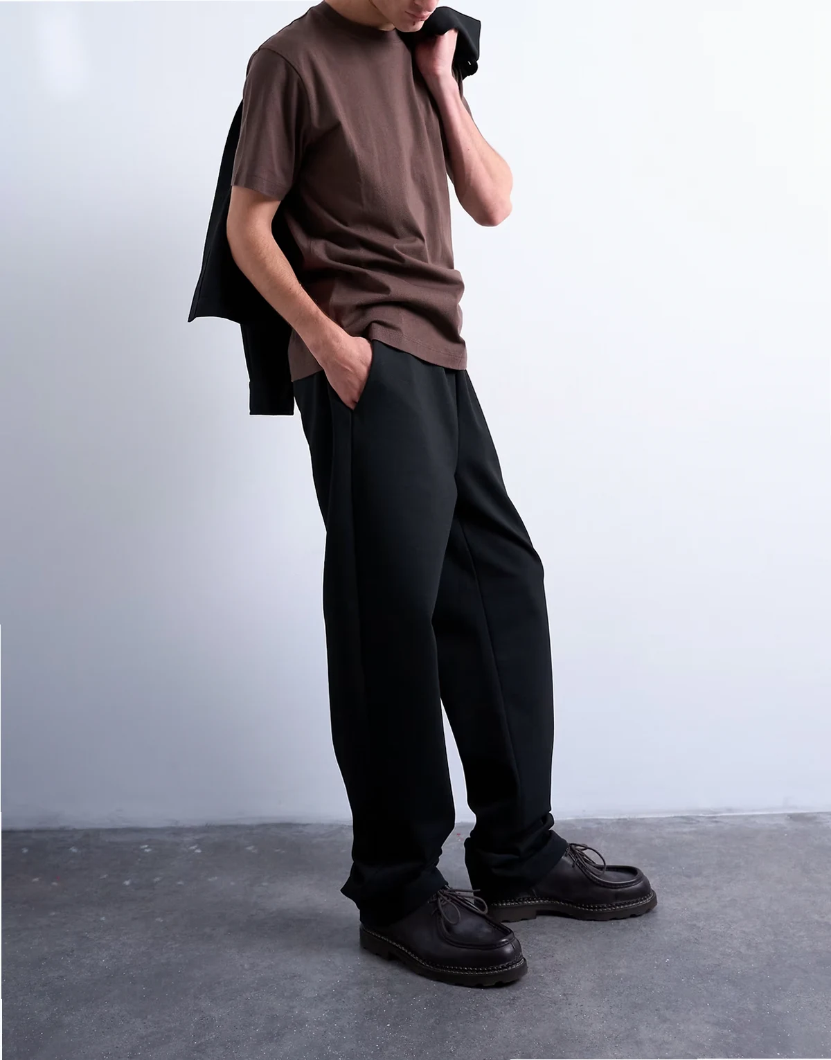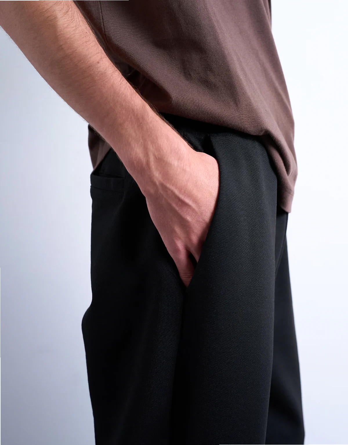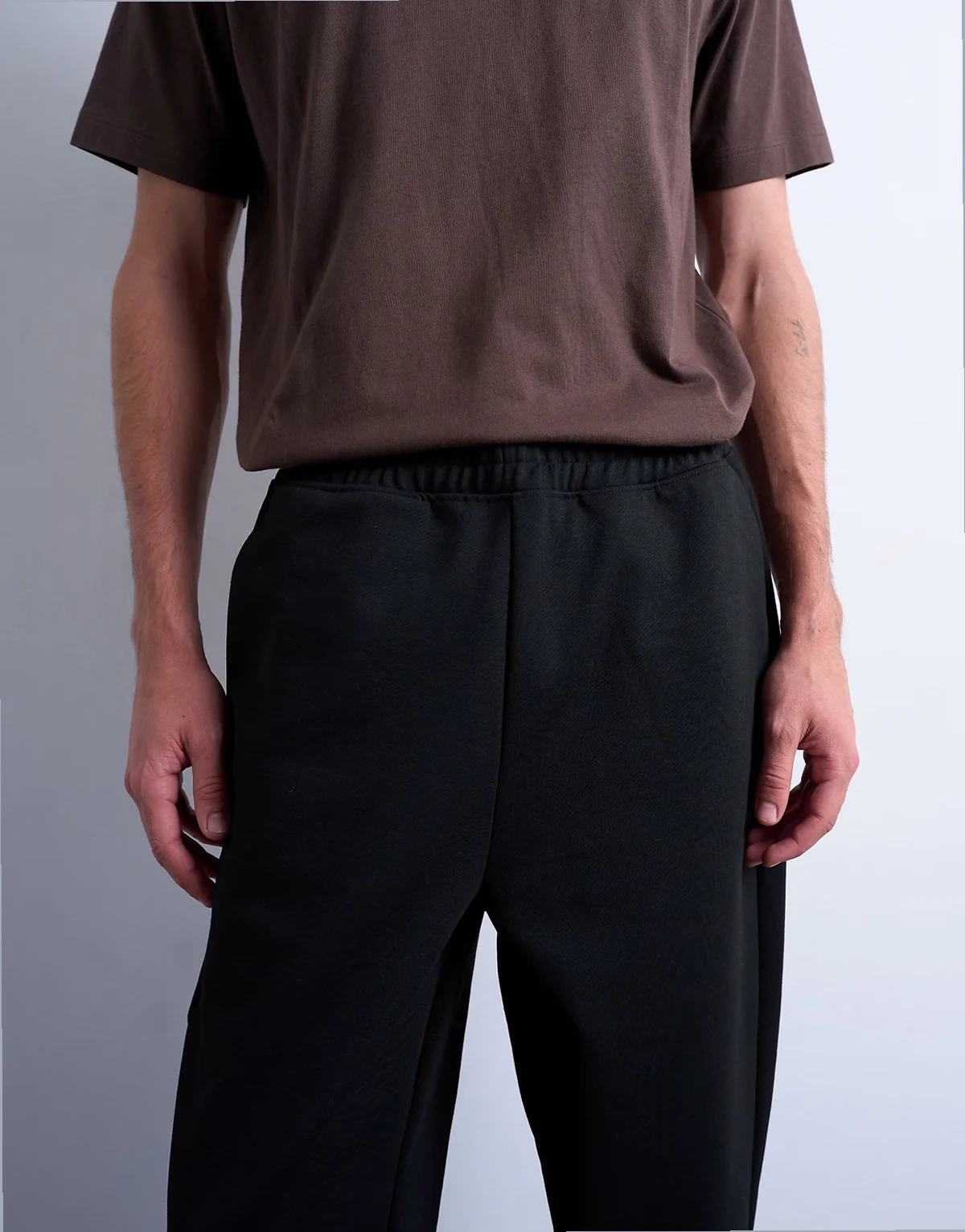 – Czarne joggersy z prostymi nogawkami z materiału interlock