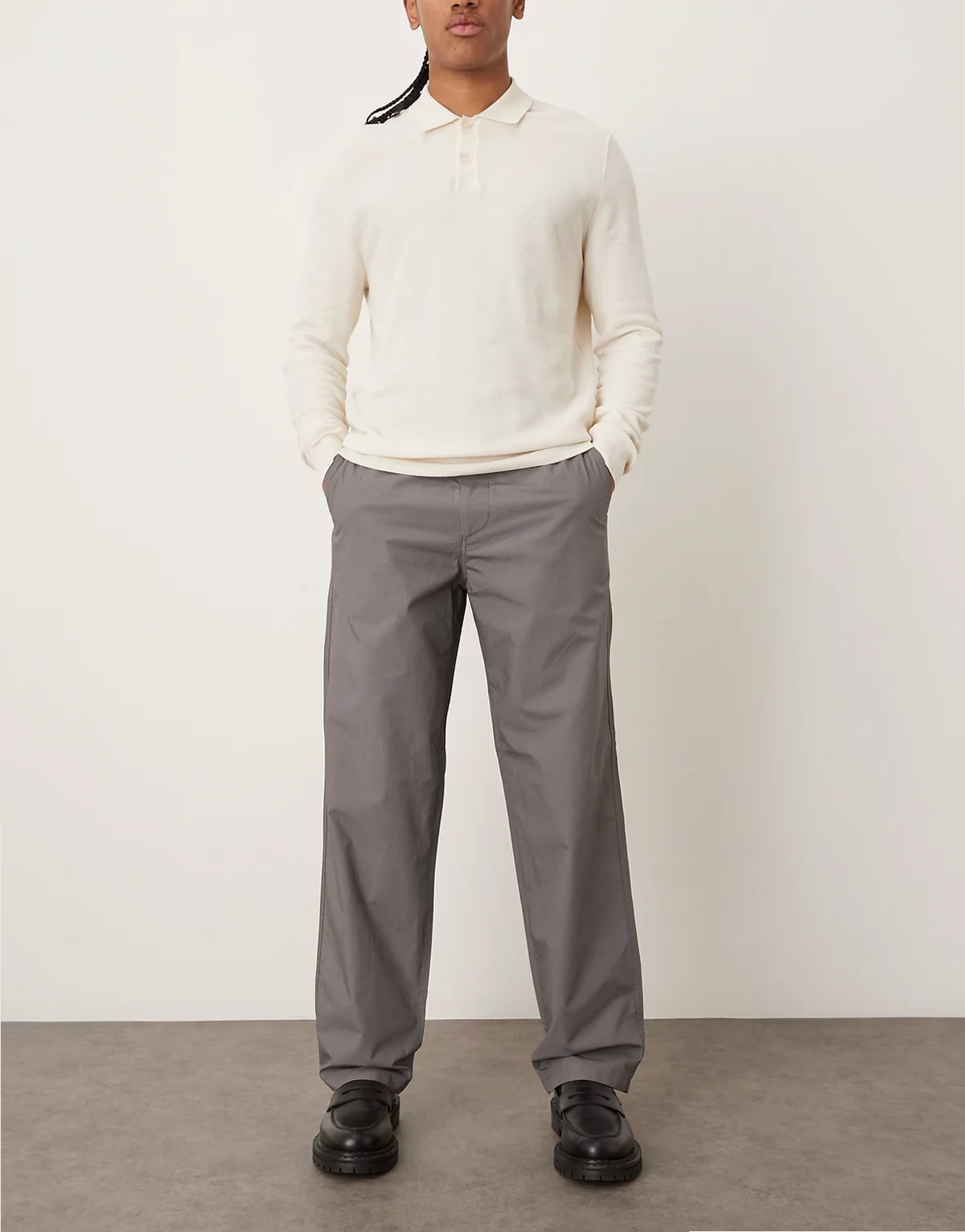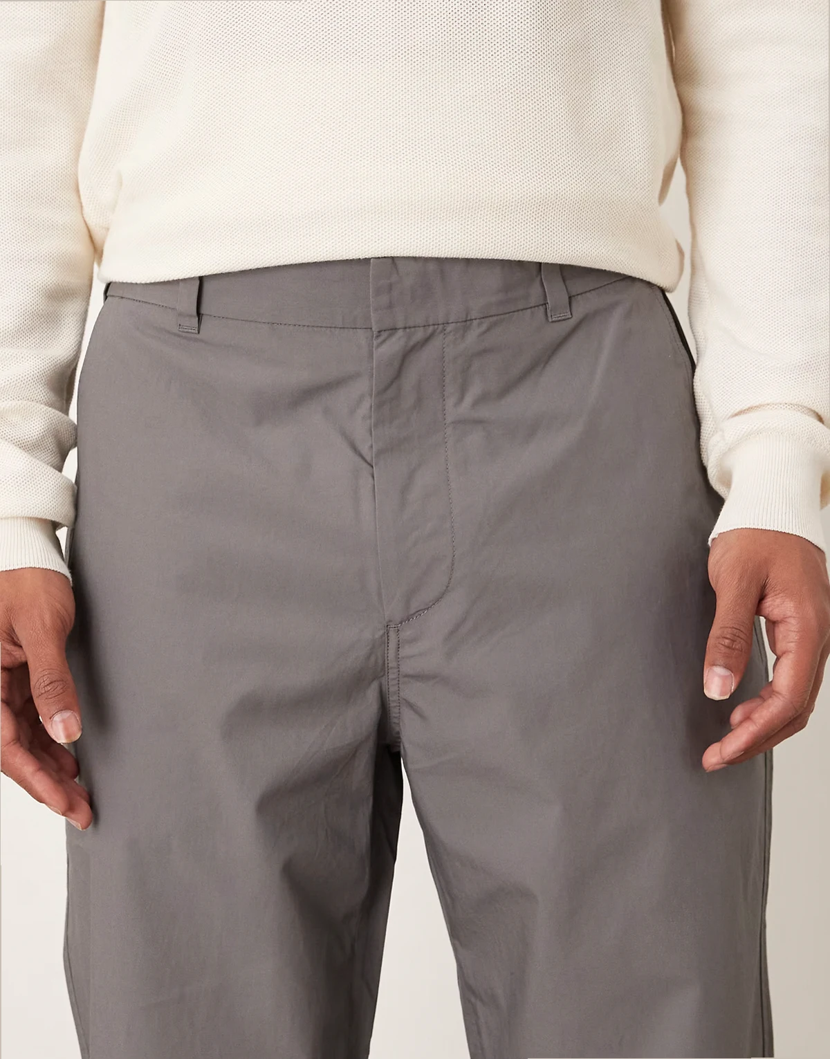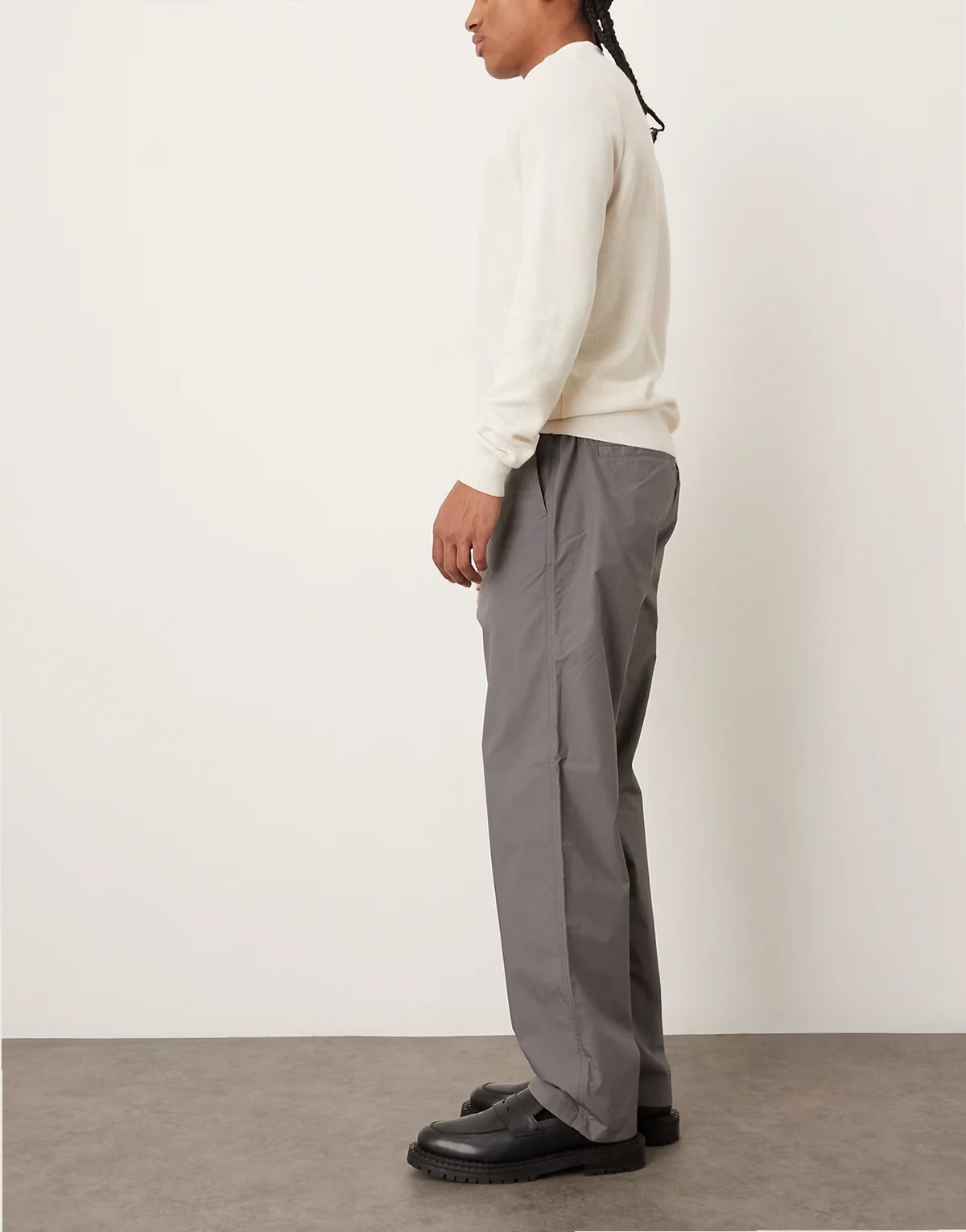 – Szare, lekkie spodnie wciągane