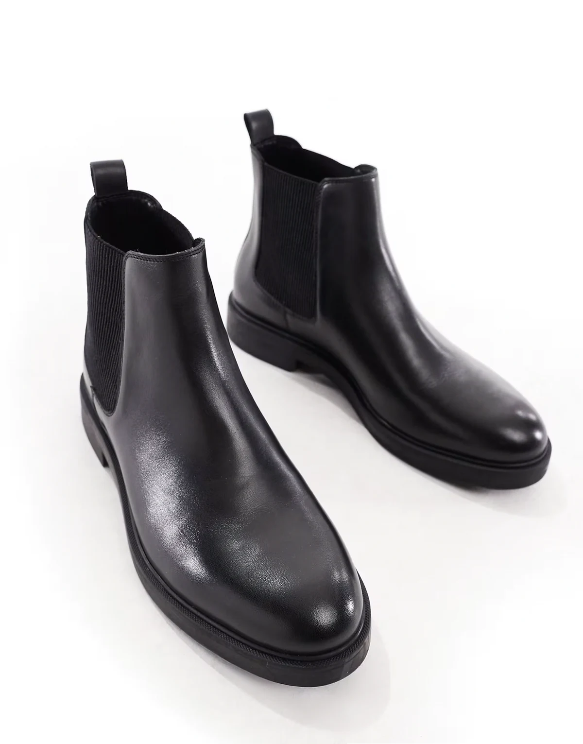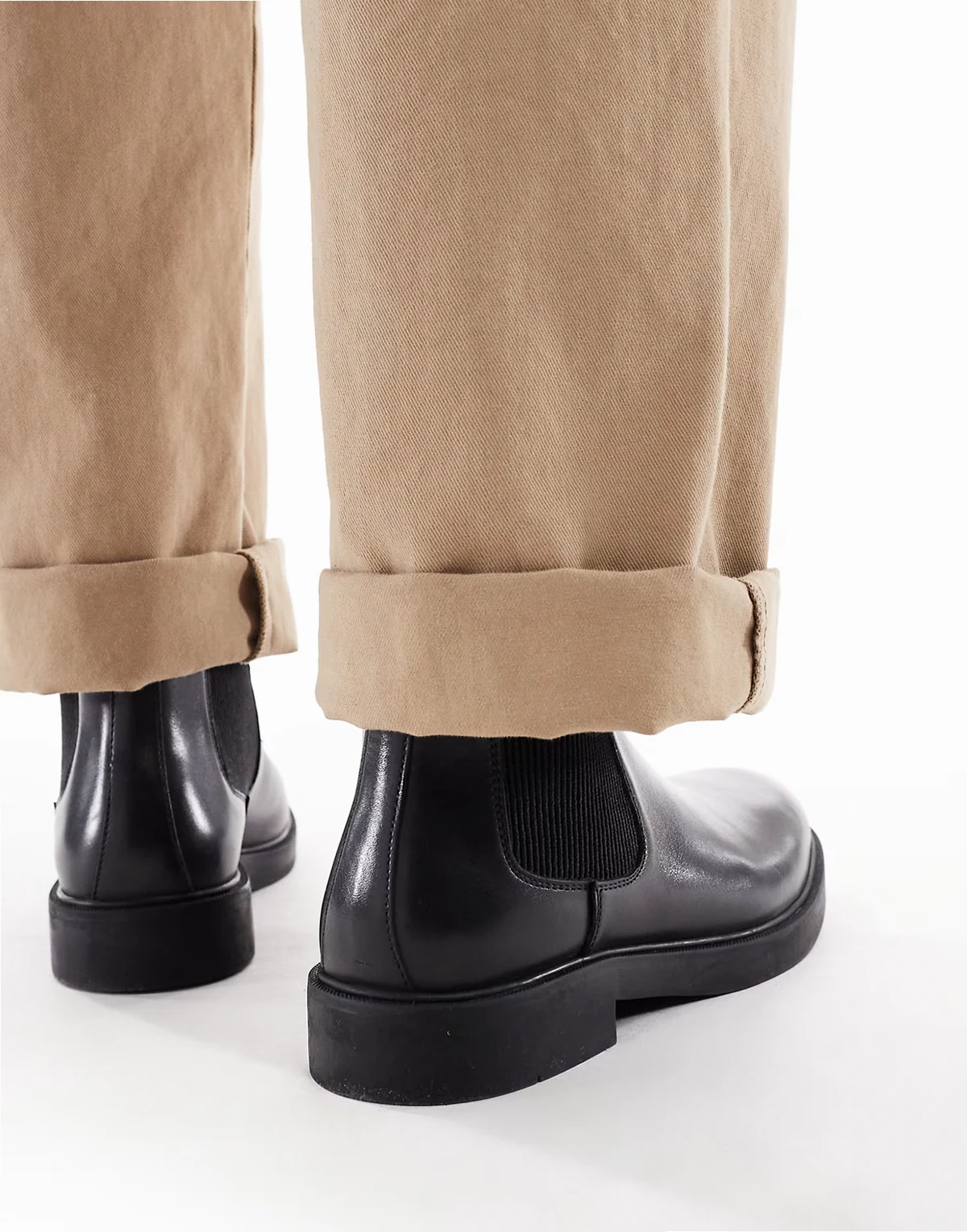 – Dice – Czarne skórzane botki sztyblety z okrągłymi noskami