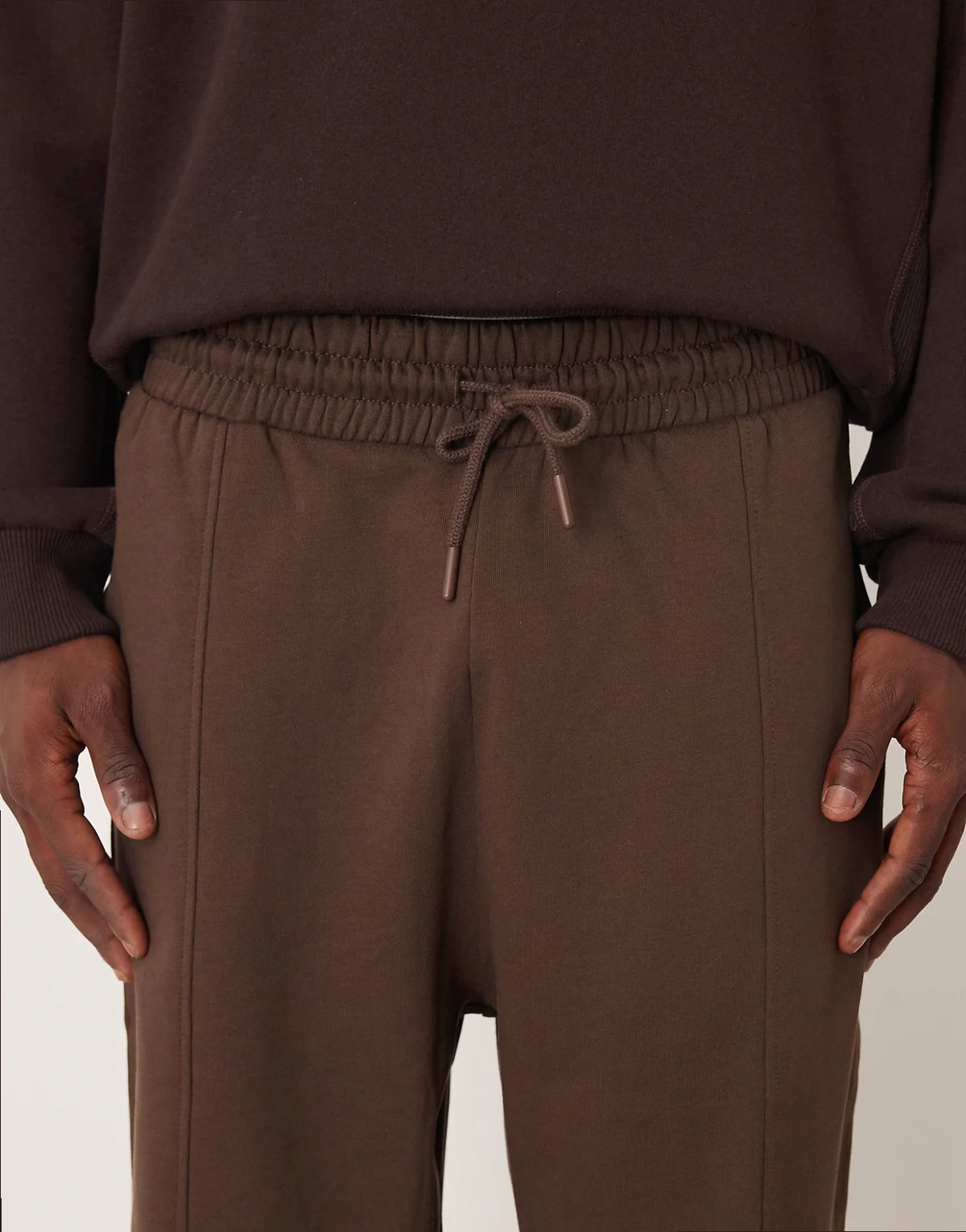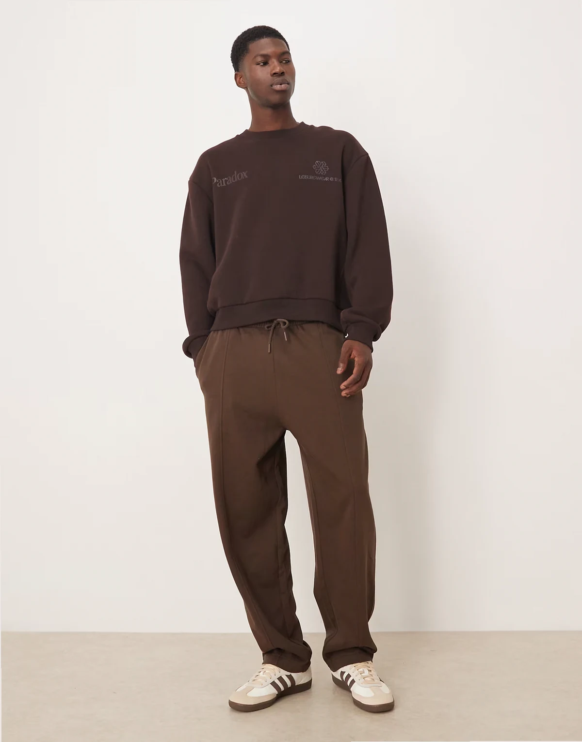 – Brązowe joggersy oversize z przeszyciami na nogawkach