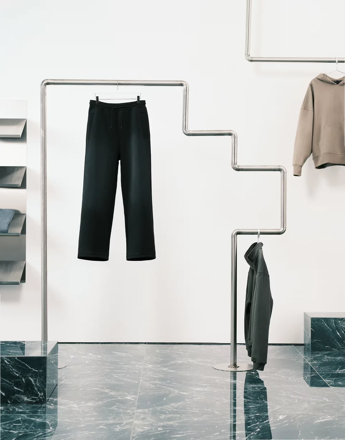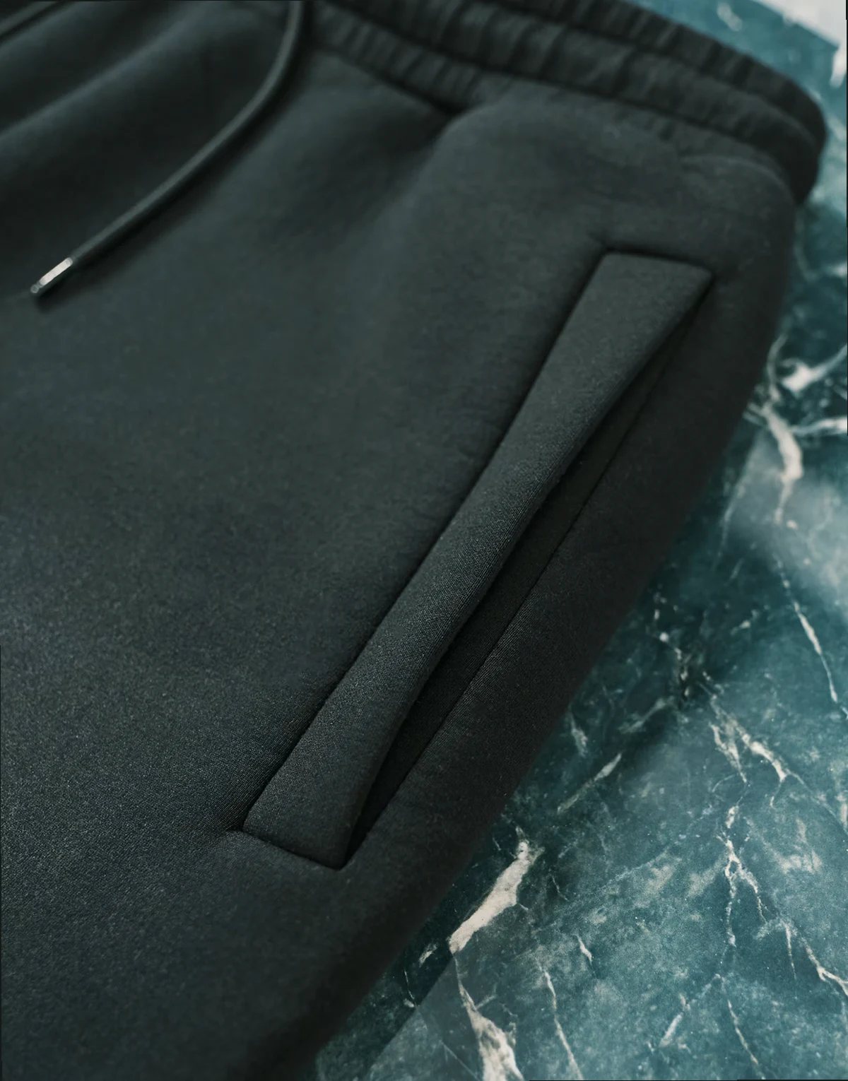 – Czarne sprane joggersy z materiału w stylu scuba, część zestawu