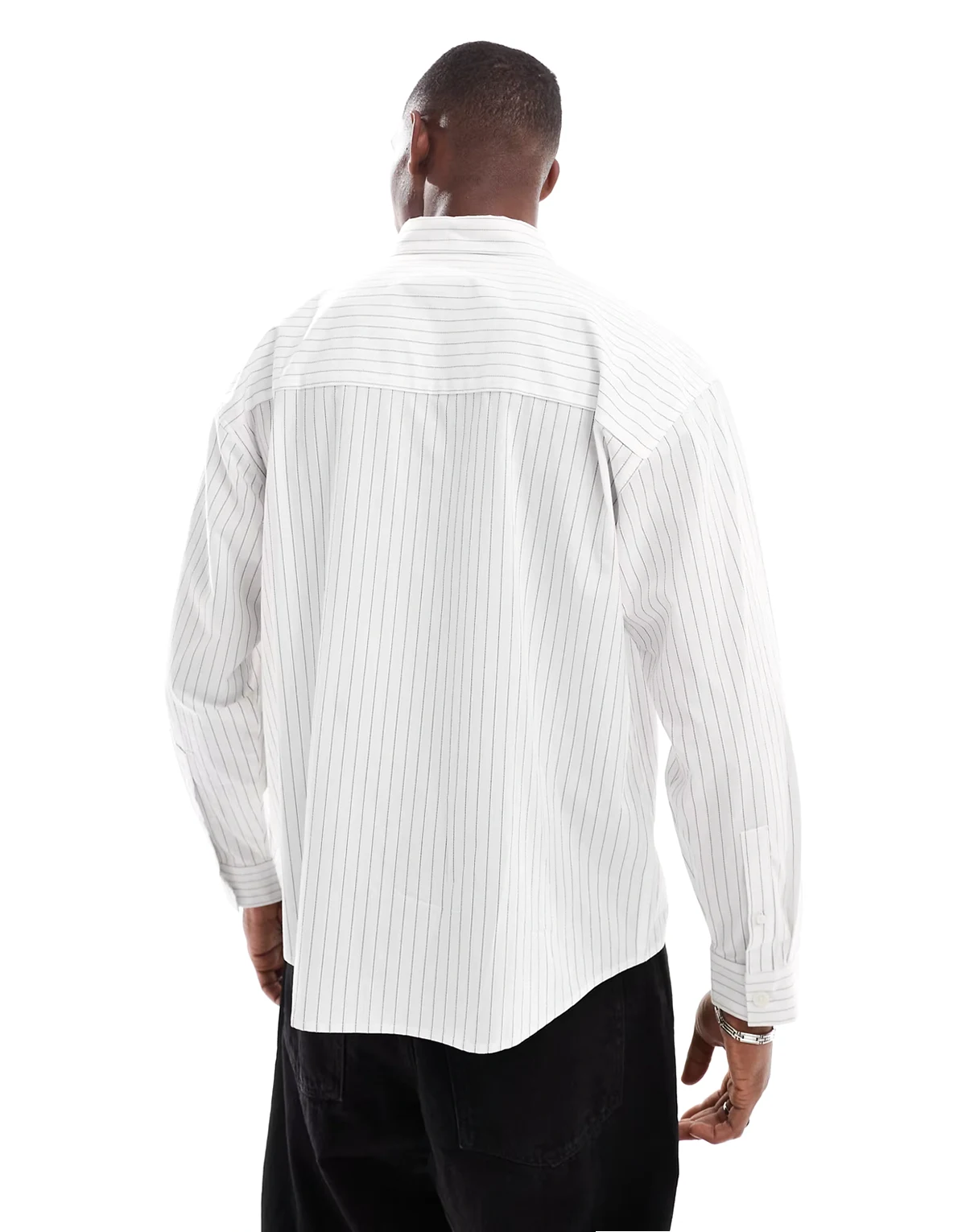 – Kopertowa koszula w prążki z rękawami typu kokon