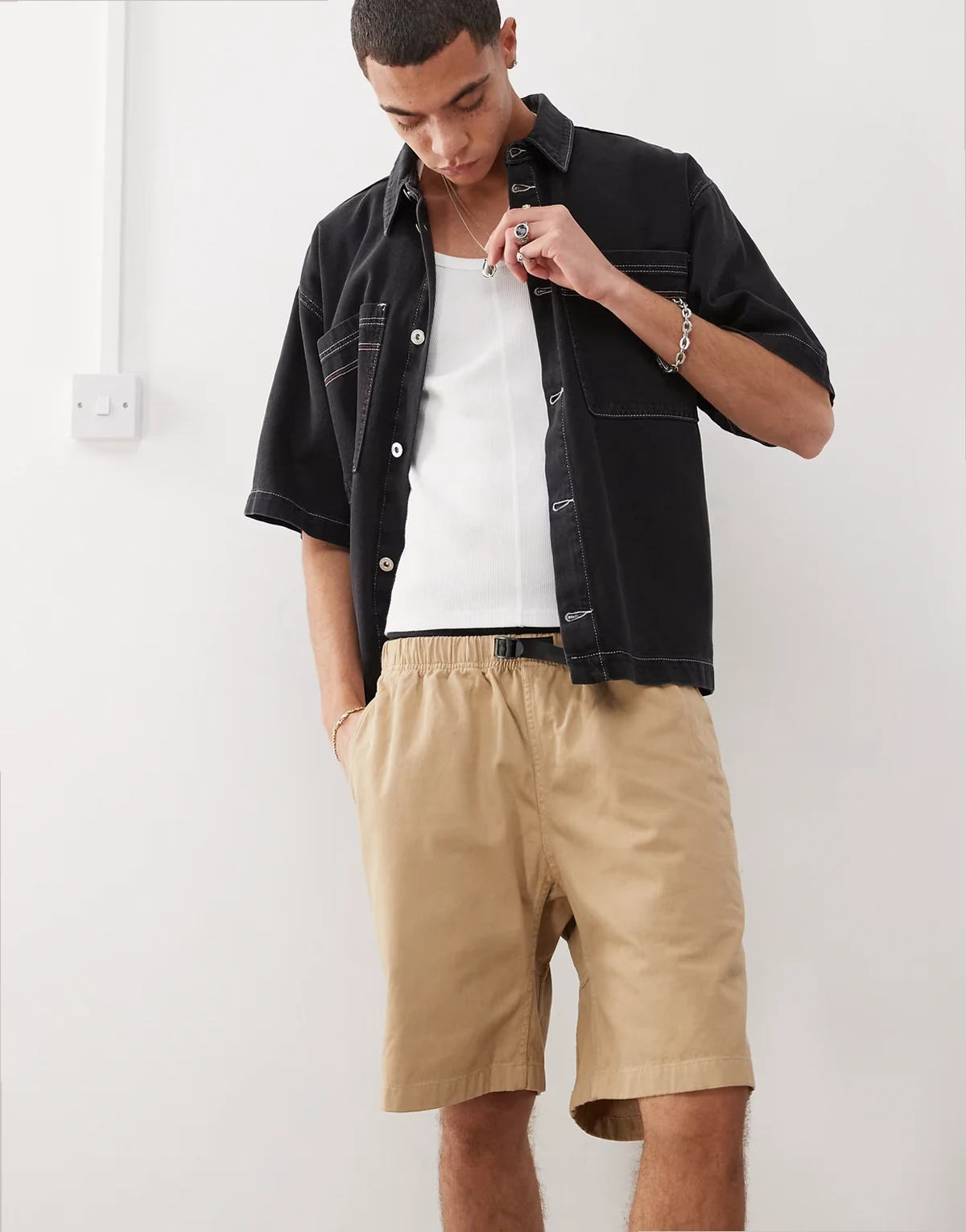 CZARNY Bawełniane szorty ze wzorem w pasy