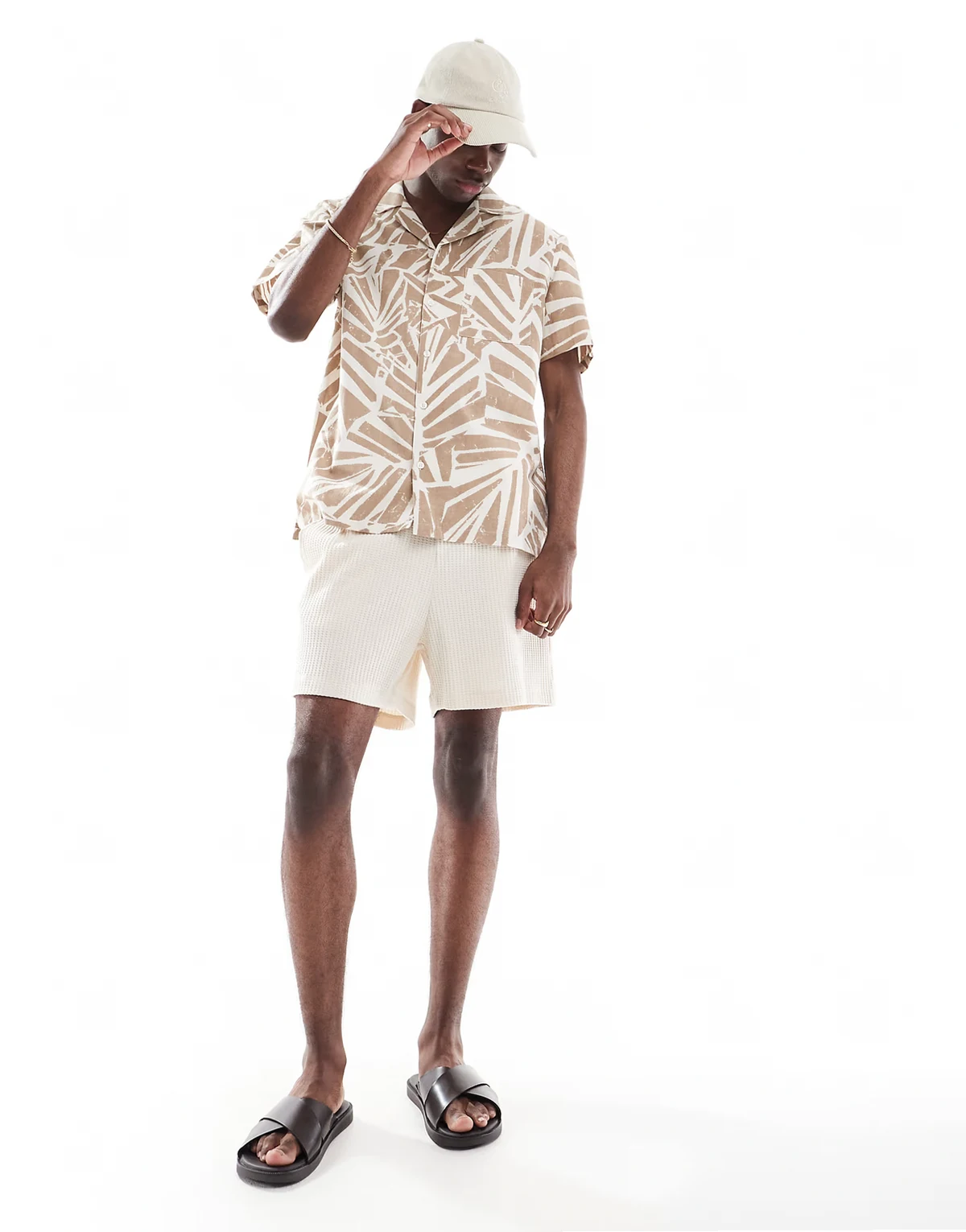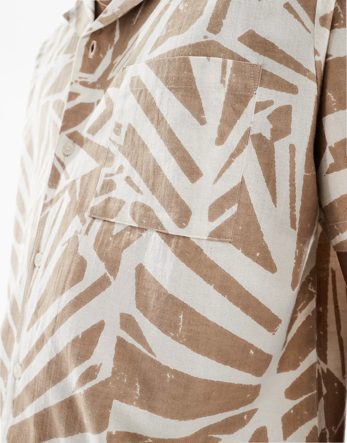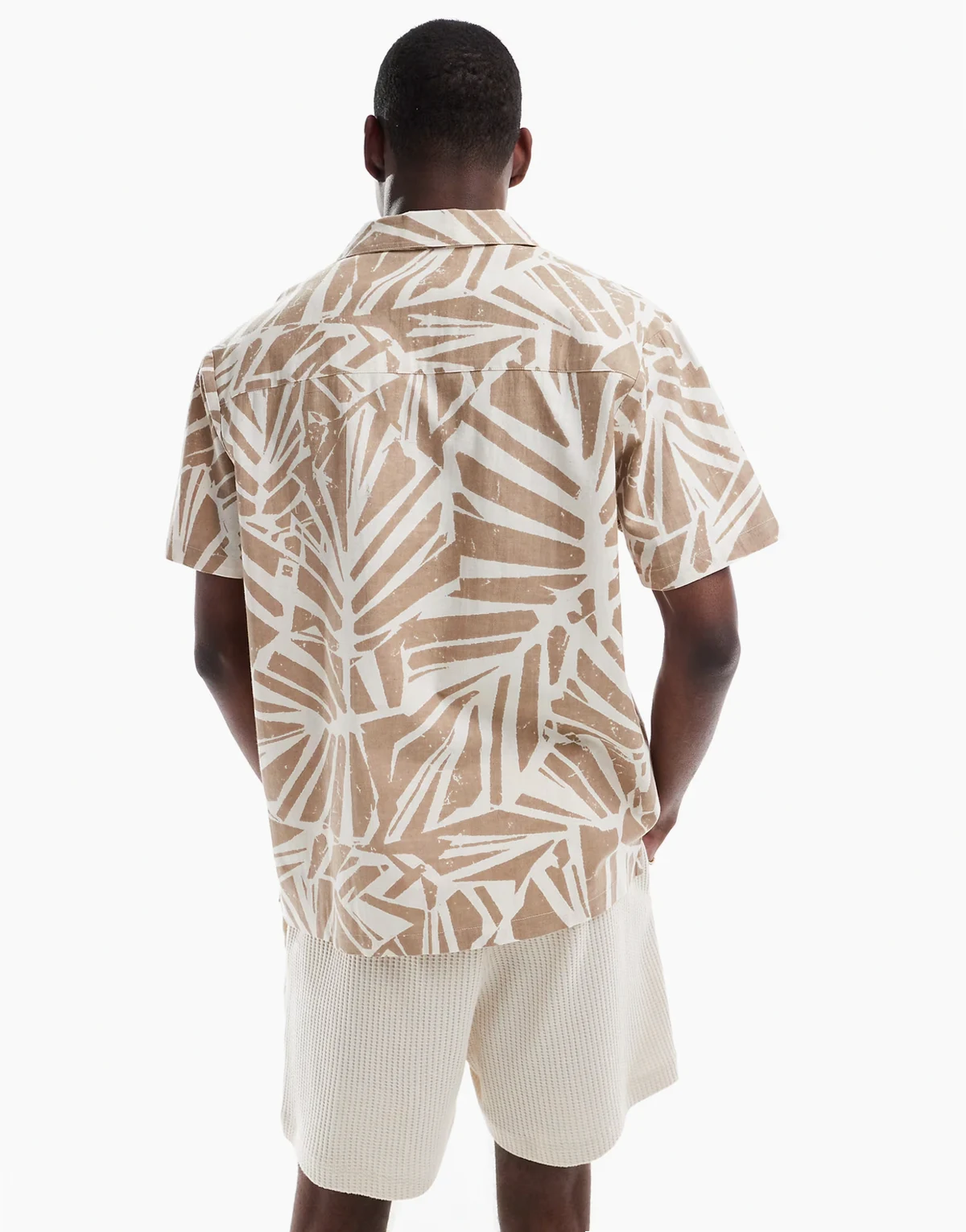 – Brązowa koszula plażowa w abstrakcyjny wzór