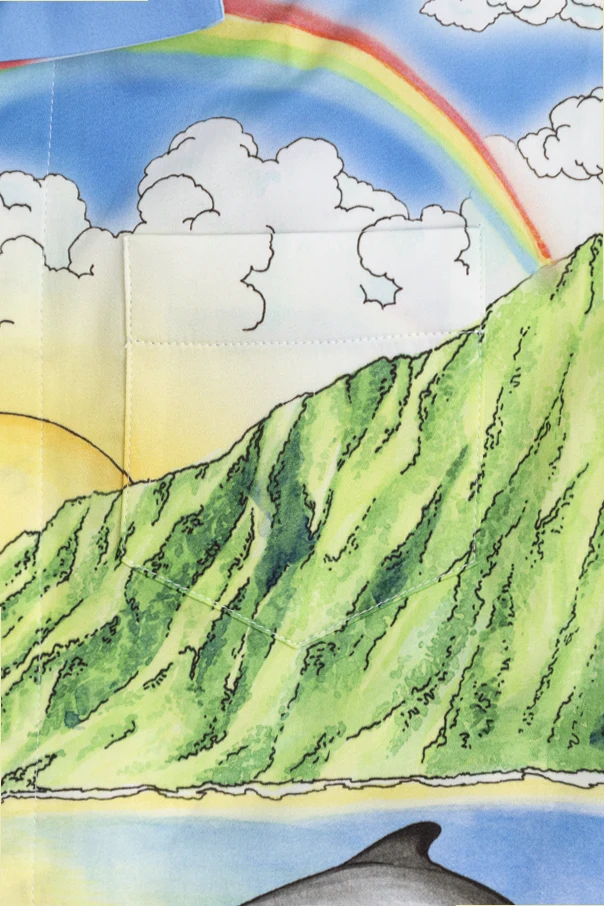 Wyjątkowy, bajkowy nadruk w niebieskim odcieniu przedstawia tropikalny krajobraz – góry, plażę, palmy, morze, tęczę, słońce, chmury i delfiny, zaś tył ozdobiony jest dodatkowo motywami łodzi, wodospadu i kwiatów. Efektowny napis „CASABLANCA” umieszczony nad kompozycją podkreśla oryginalność projektu.