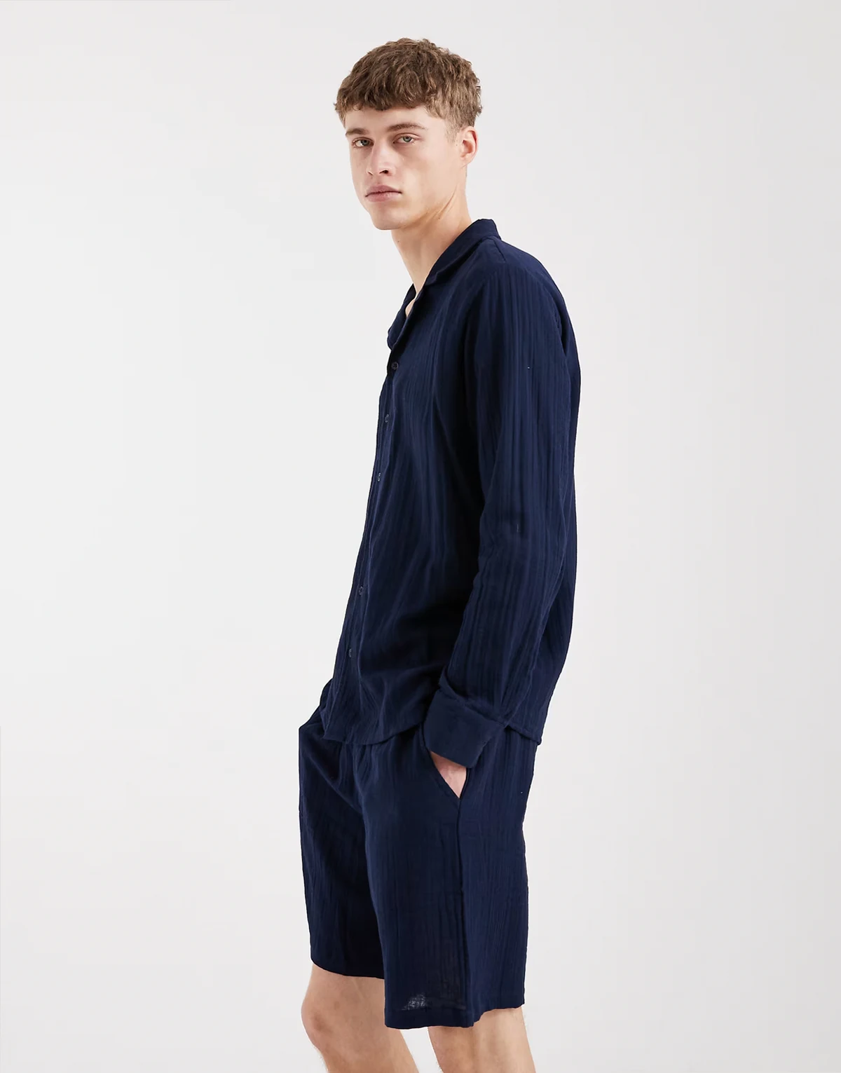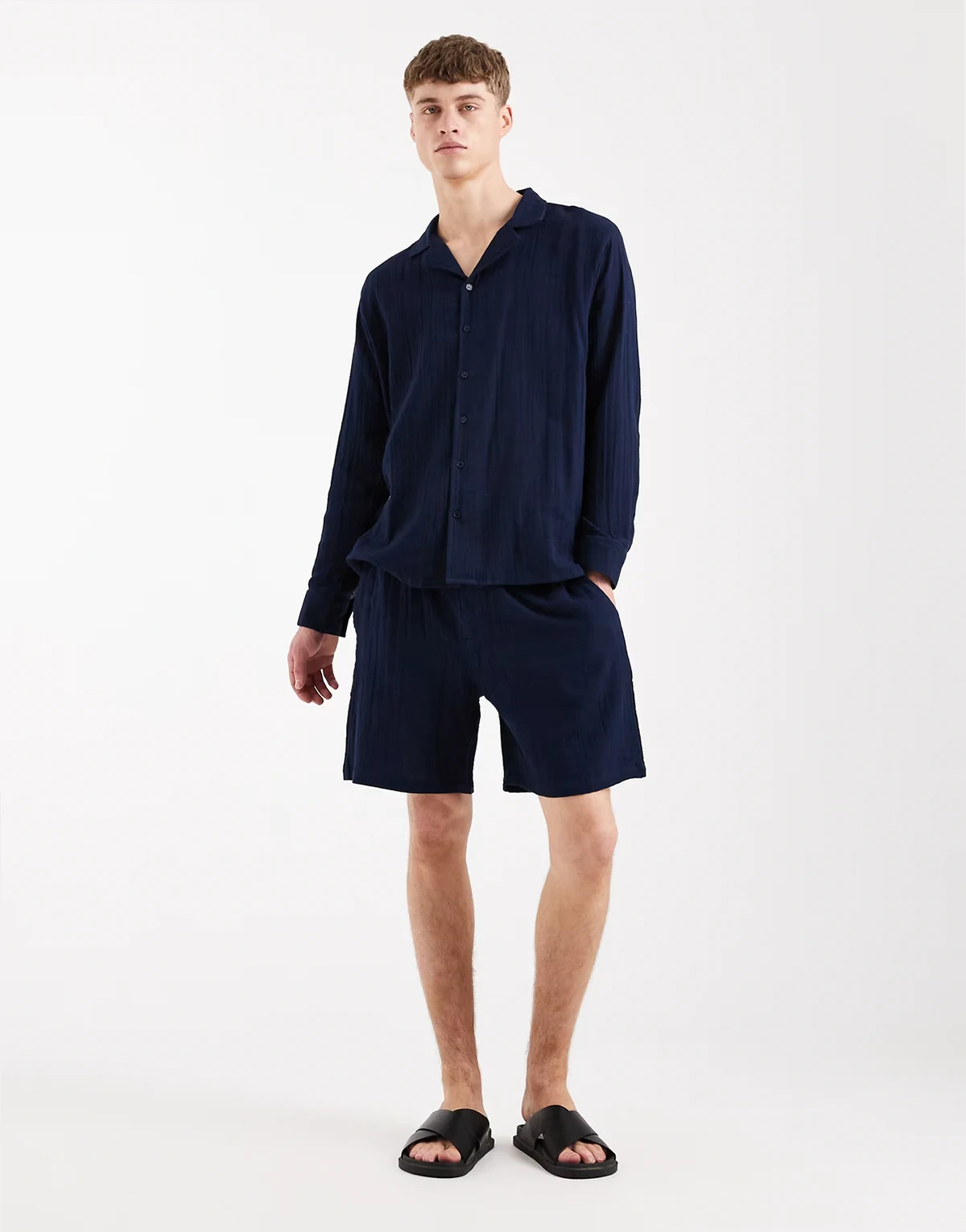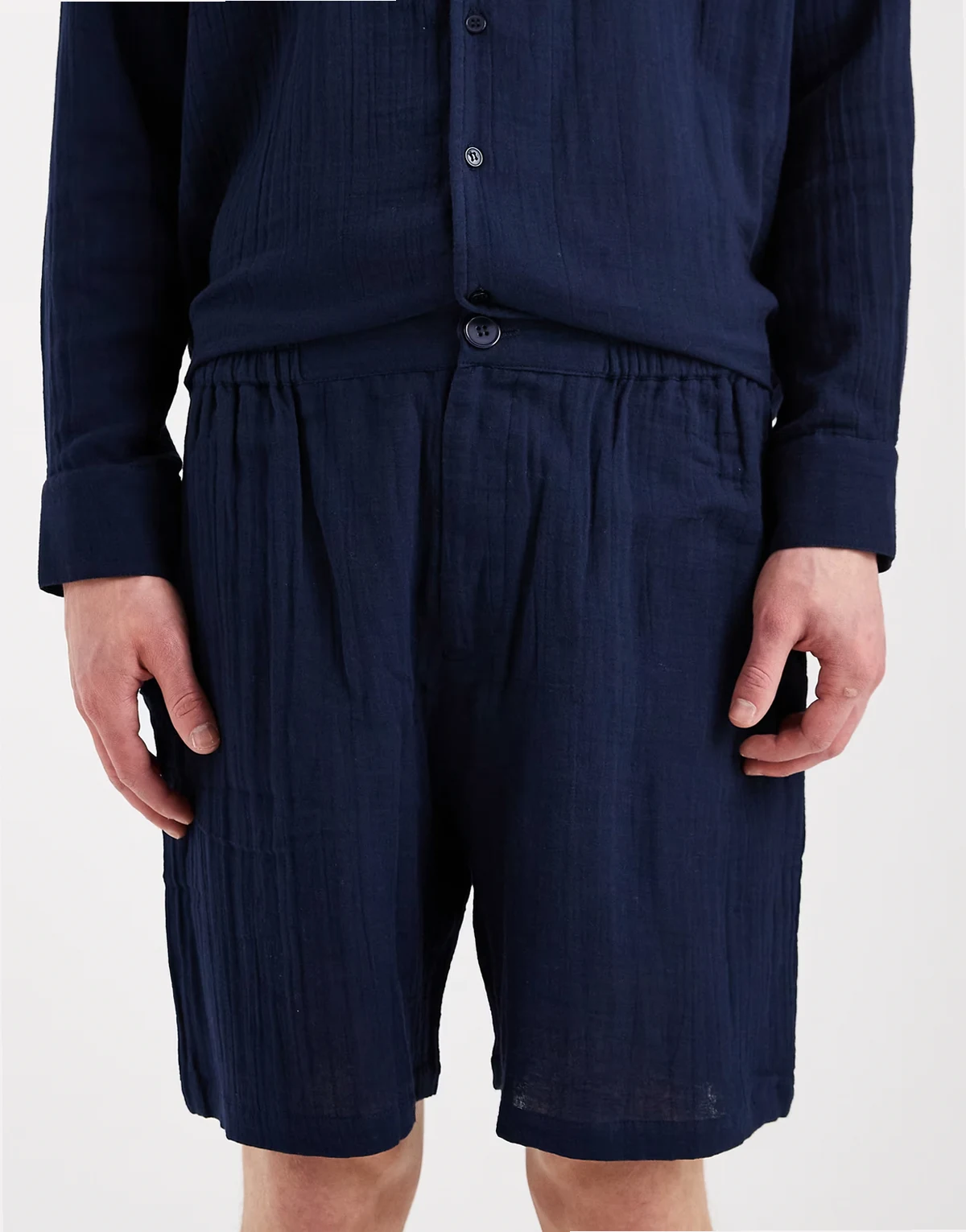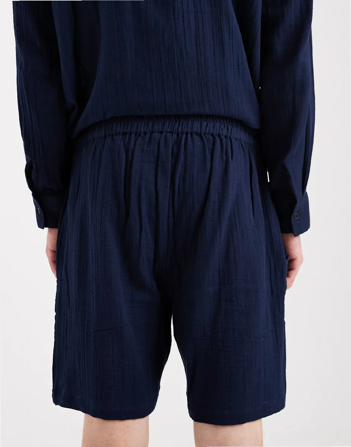 – Granatowe szorty plażowe o waflowej fakturze, część zestawu