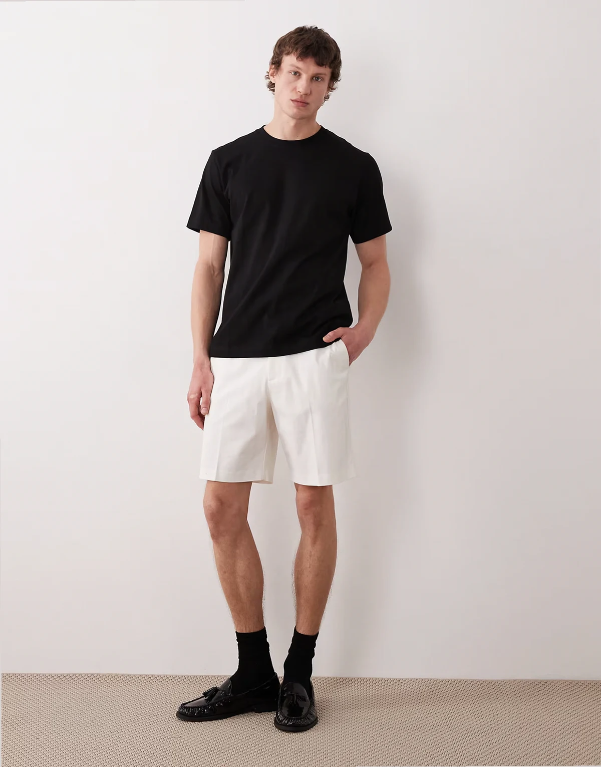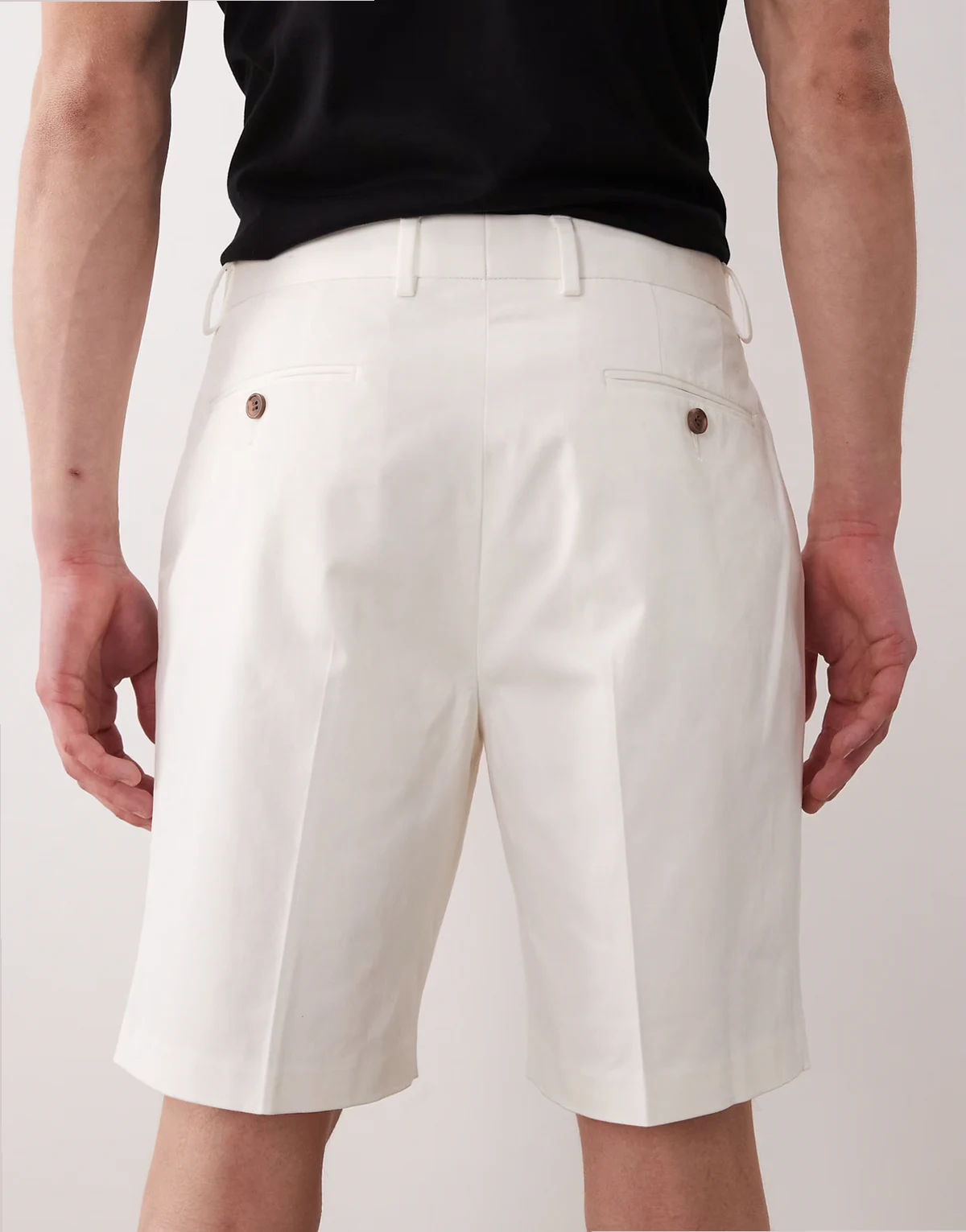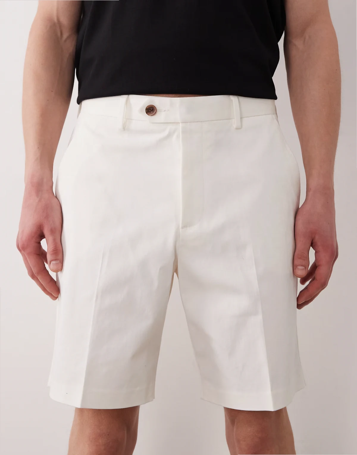 – Białe eleganckie szorty chinosy o regularnym kroju z mieszanki bawełny