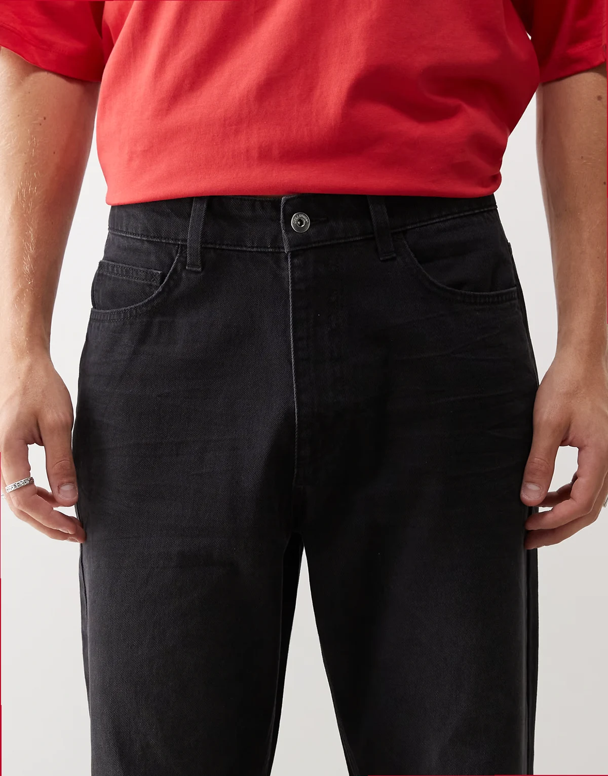 – x005 – Czarne sprane jeansy z prostymi nogawkami