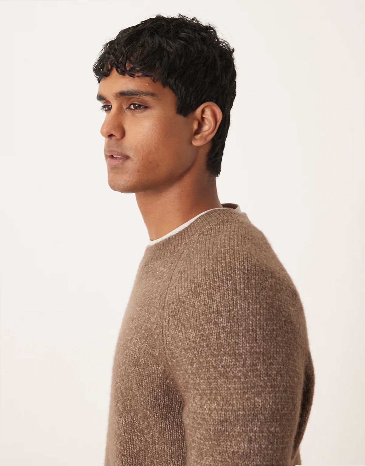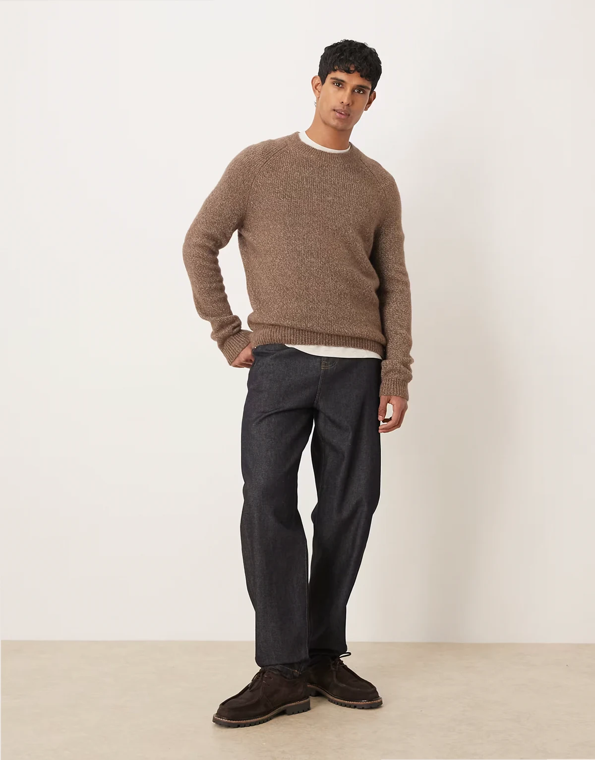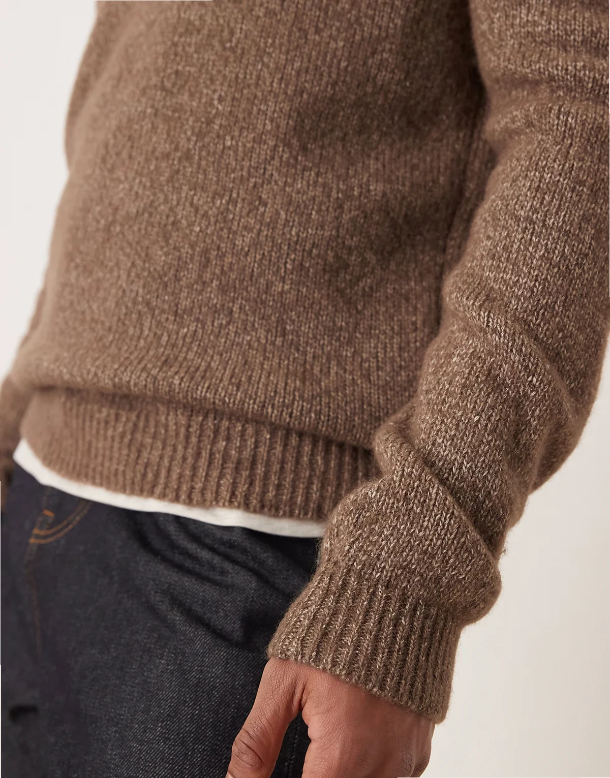 – Sweter z domieszką wełny w kolorze mokki z nakrapianym wzorem