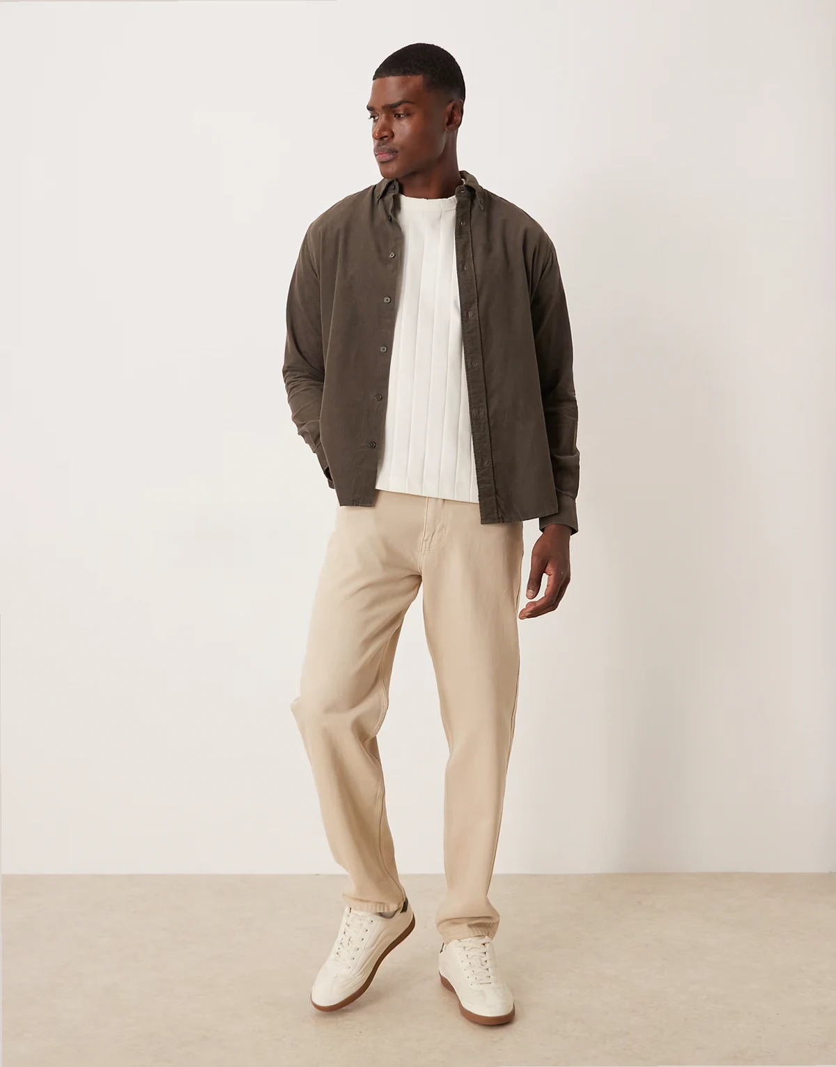 – Brązowa sztruksowa koszula z bawełny 100%