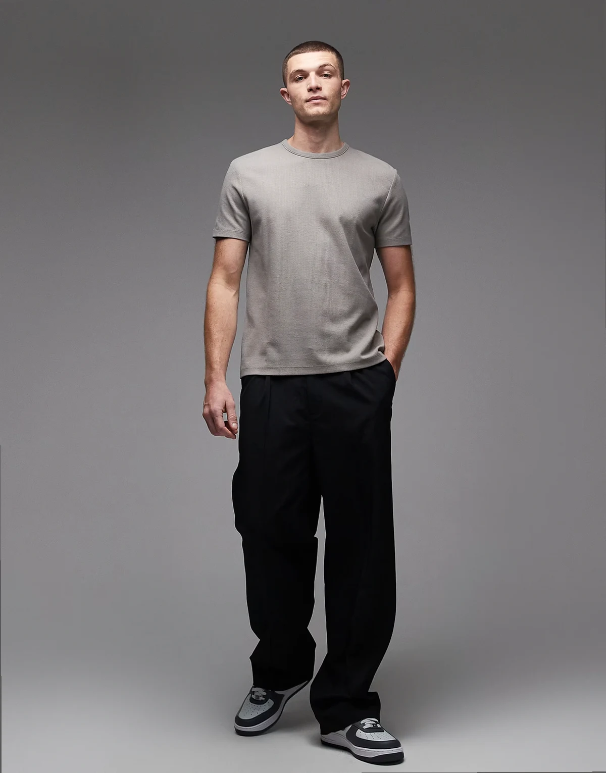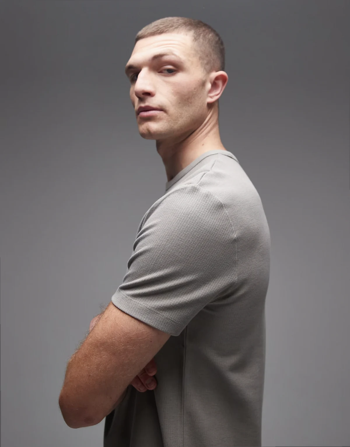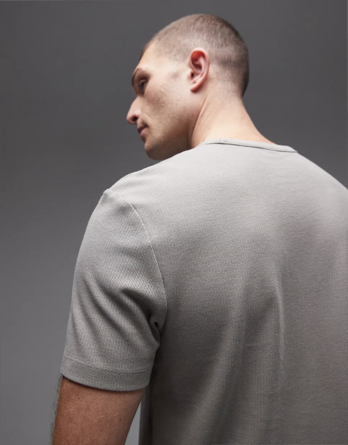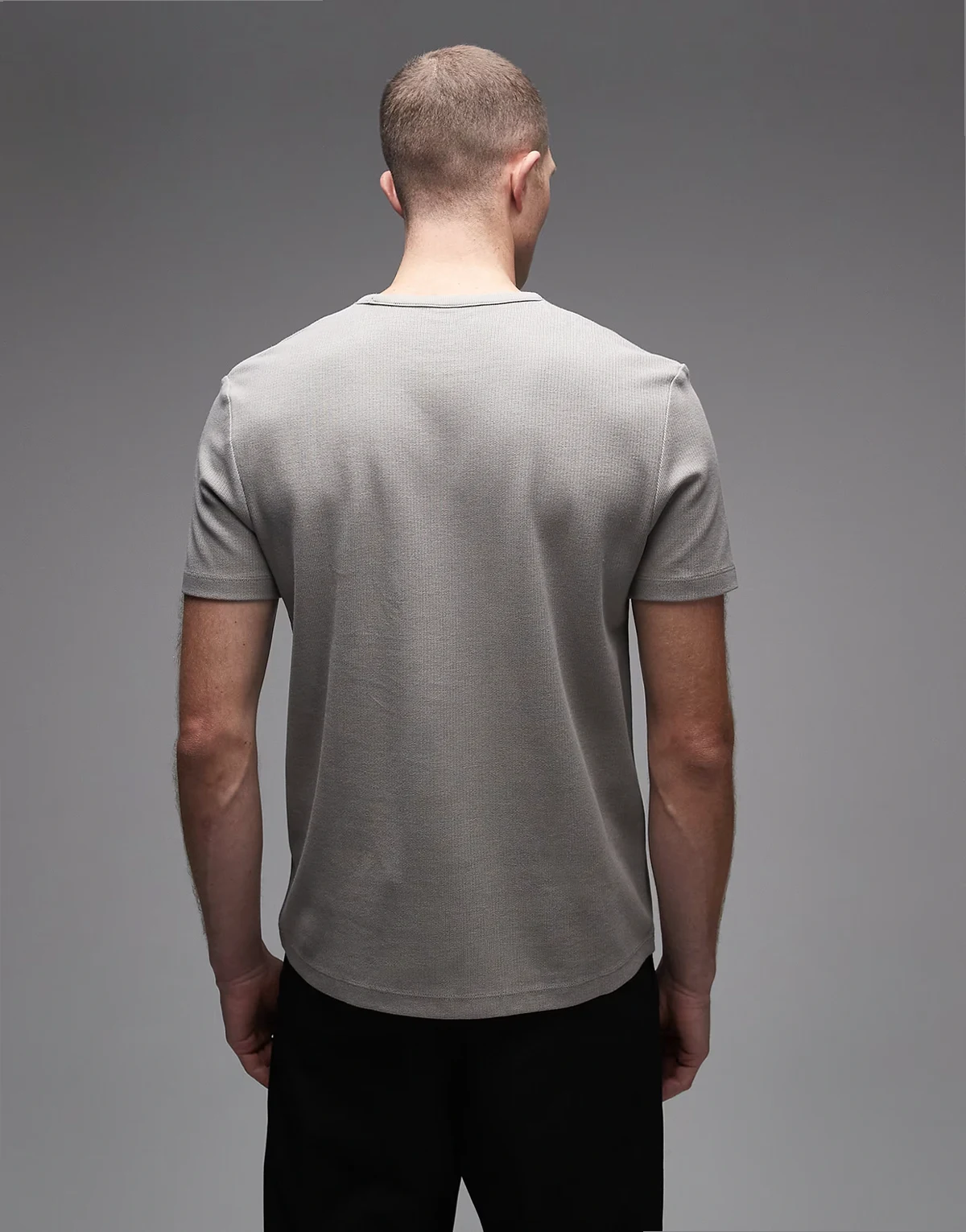 – Szary fakturowany T-shirt bawełniany