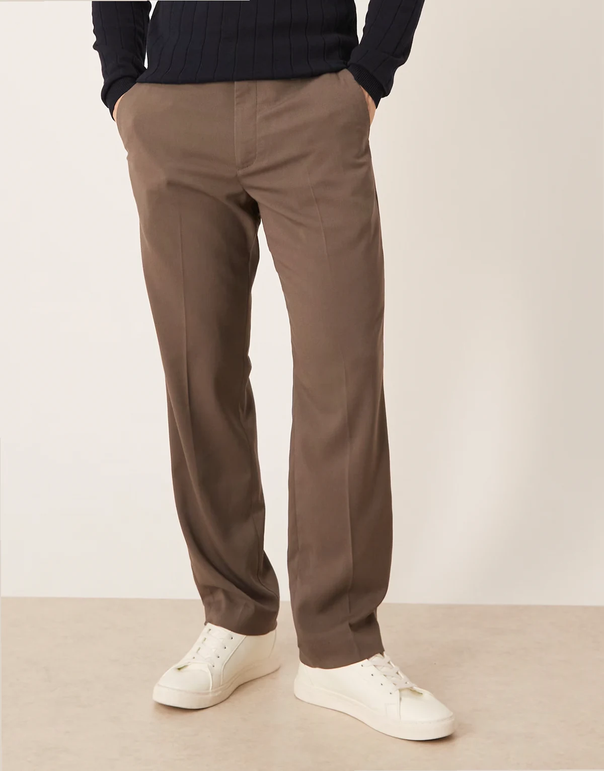 – Brązowe eleganckie spodnie