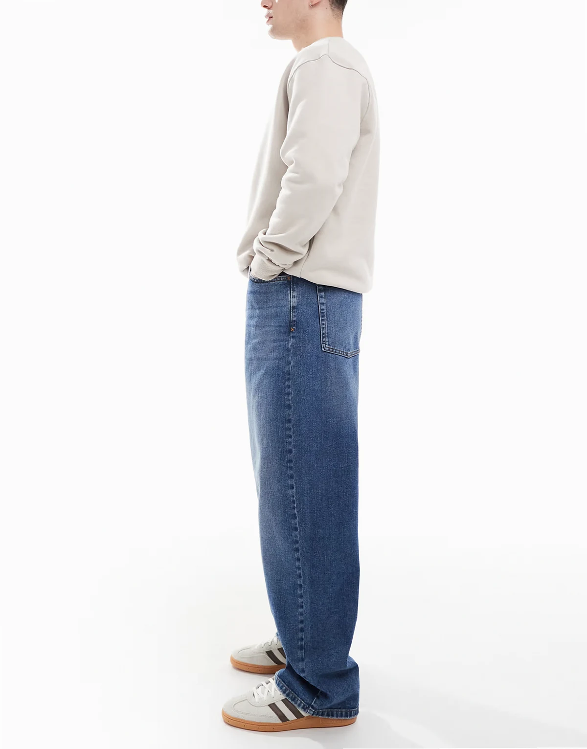 – X001 – Obszerne niebieskie jeansy ze średnim stanem