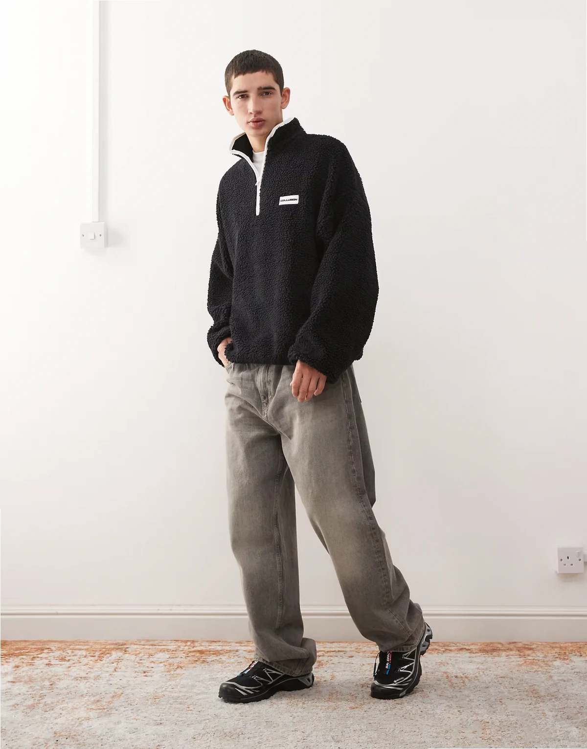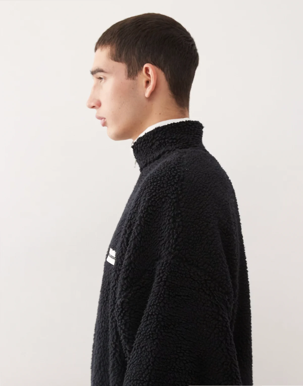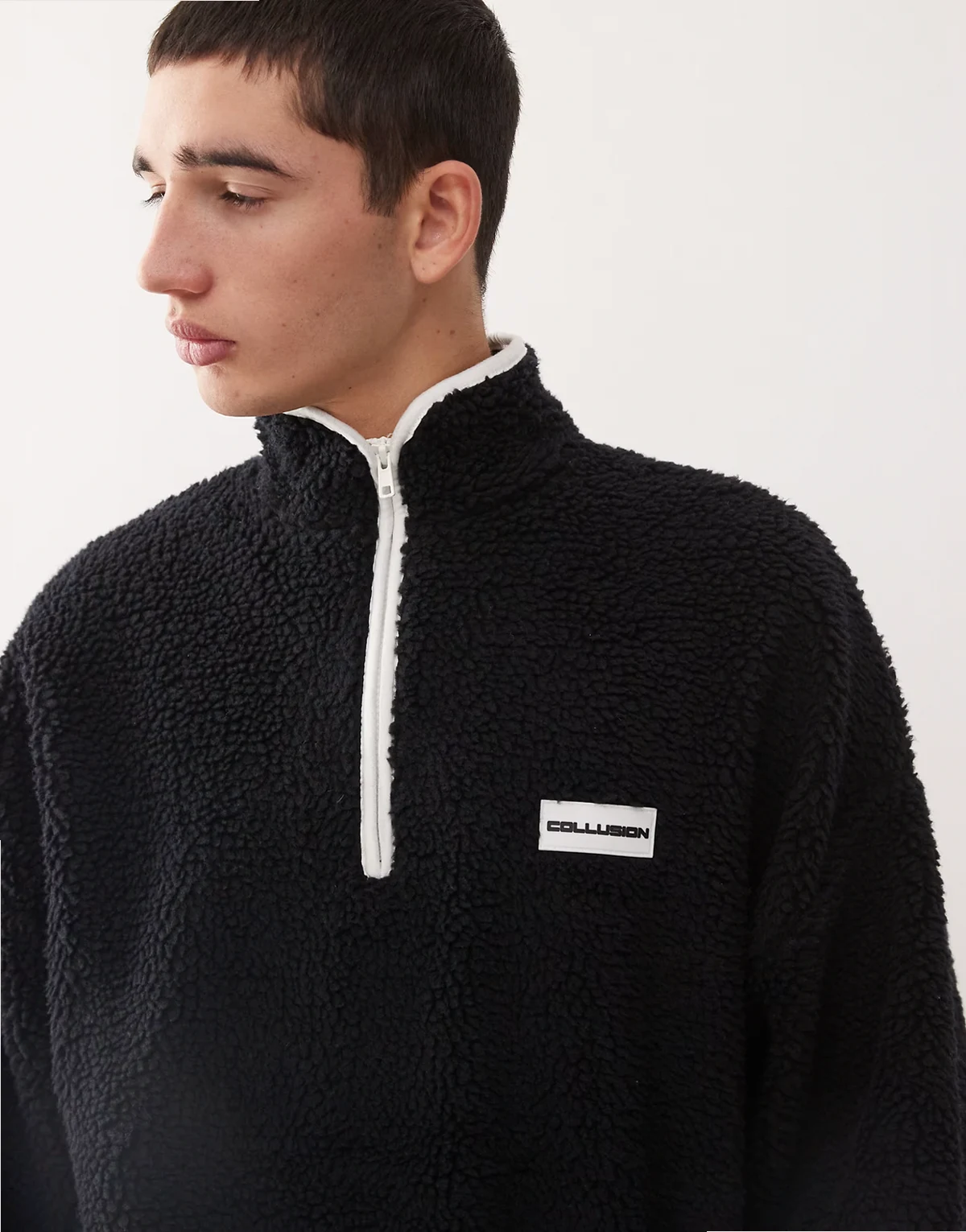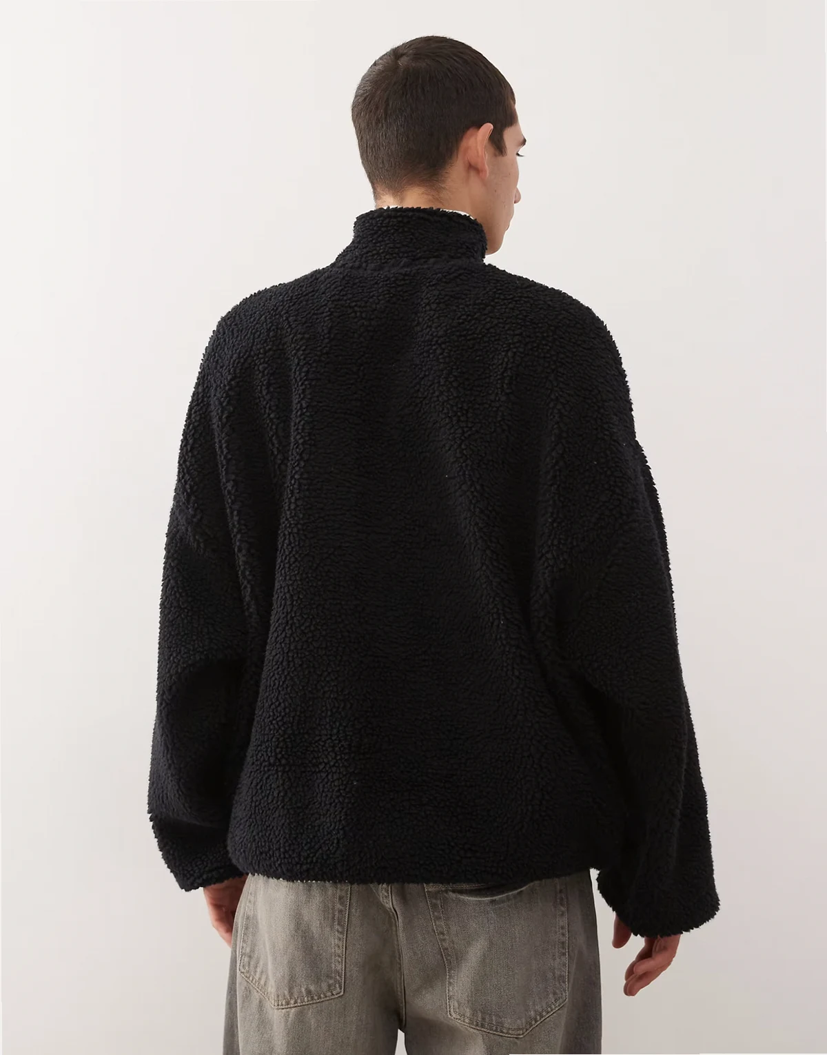 – Czarna bluza z polaru typu baranek z zamkiem pod szyją