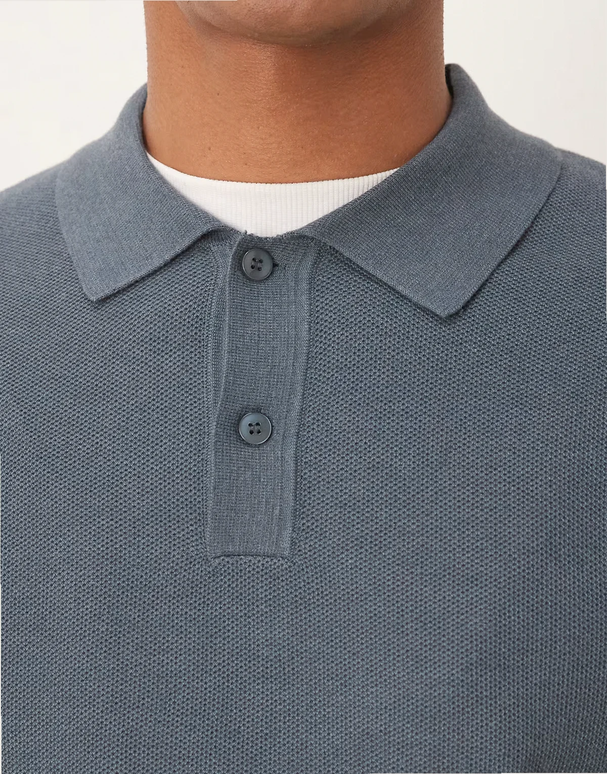 – Biała teksturowana koszulka polo o luźnym kroju