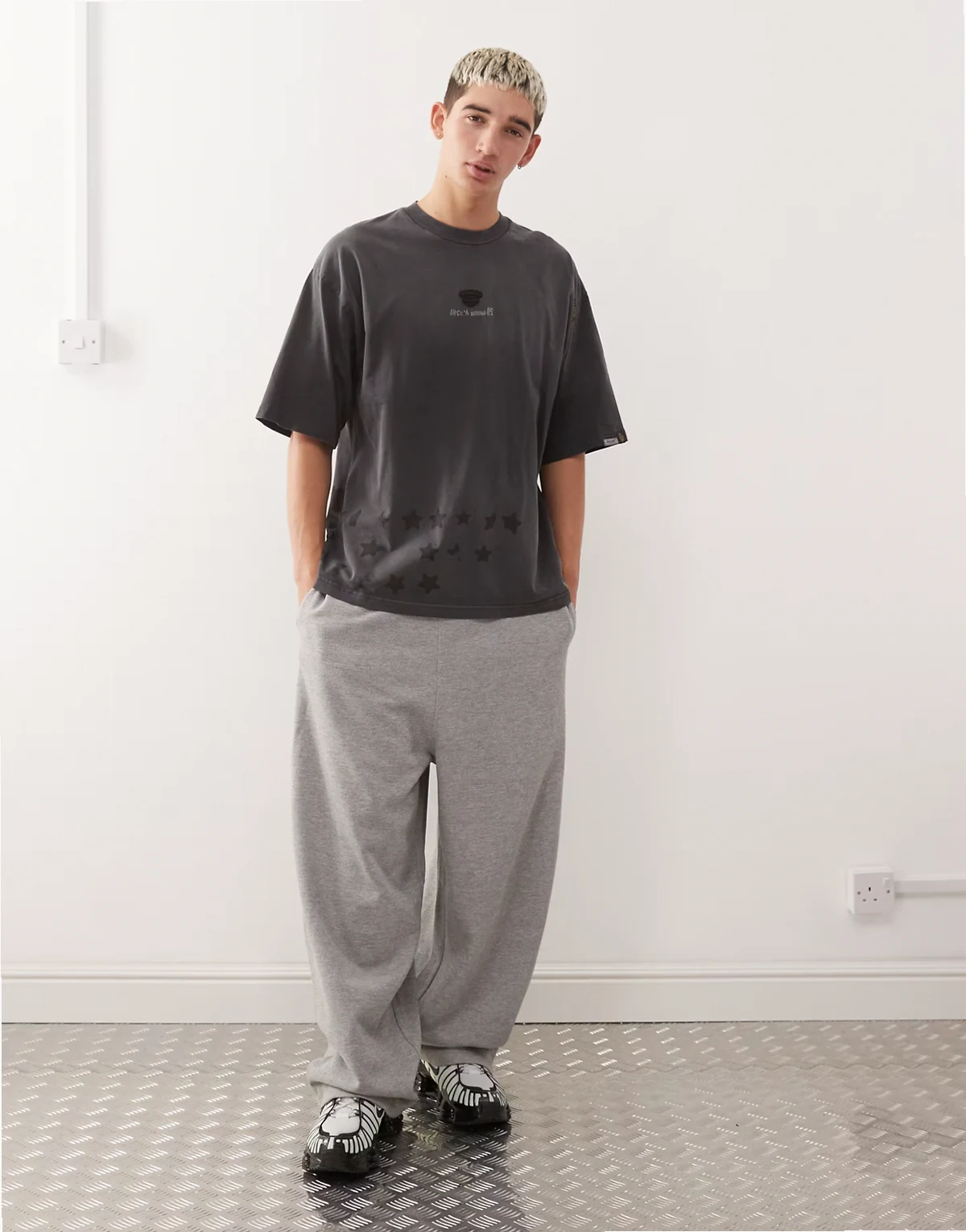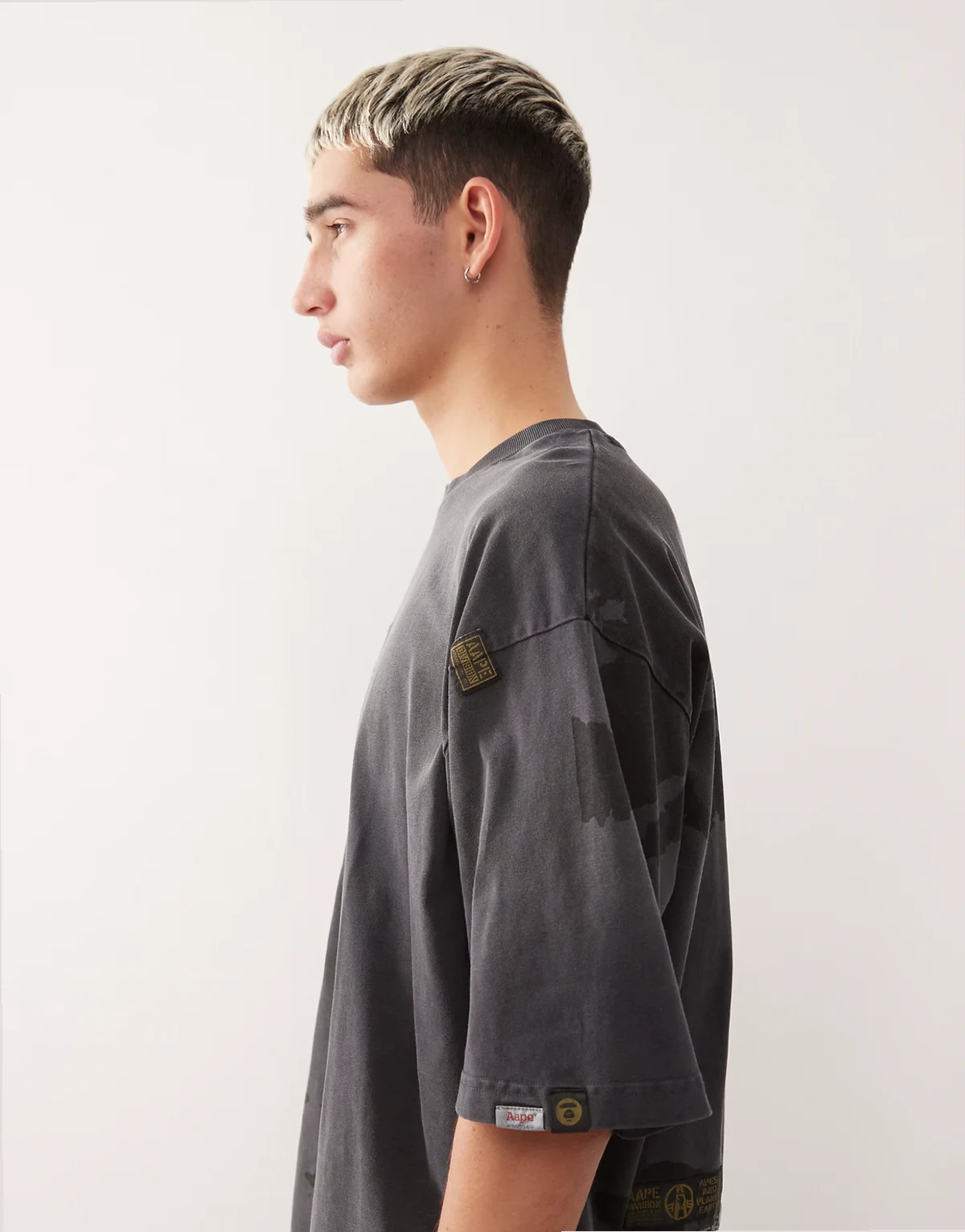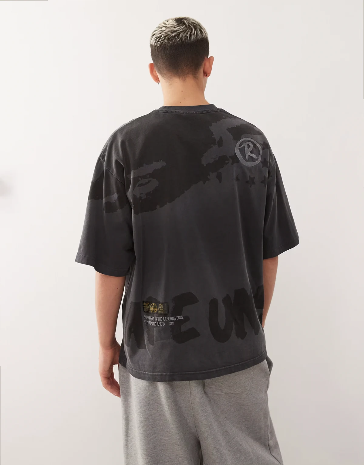AAPE By A Bathing Ape – Szary T-shirt oversize z efektem spray dye