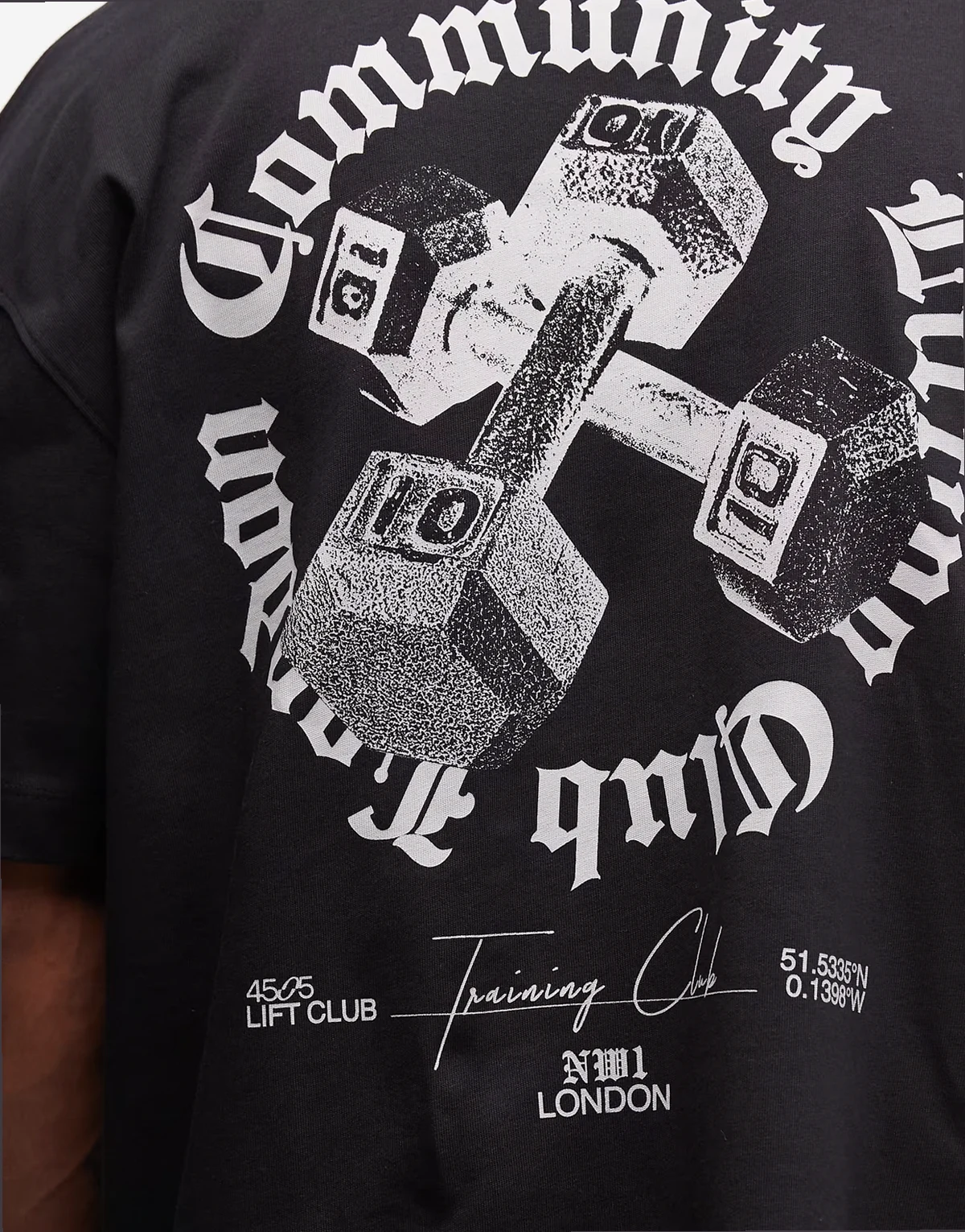 – Czarny szybkoschnący T-shirt oversize z grafiką na plecach z grubej bawełny