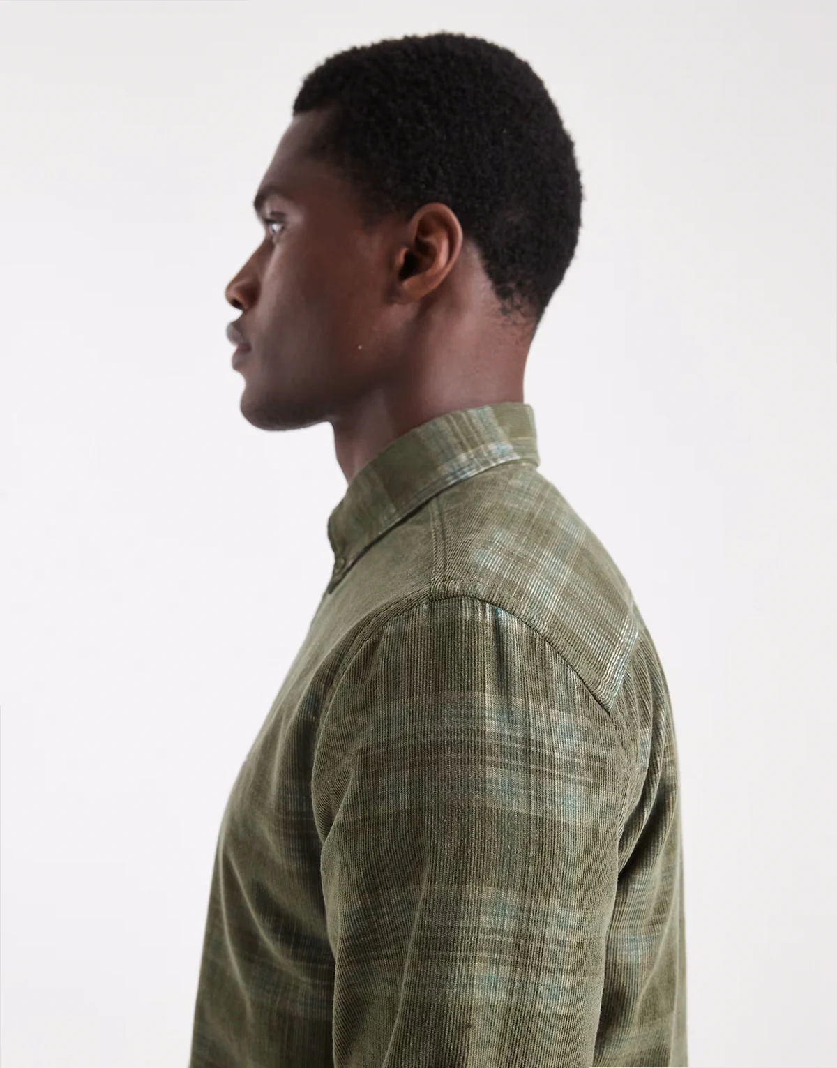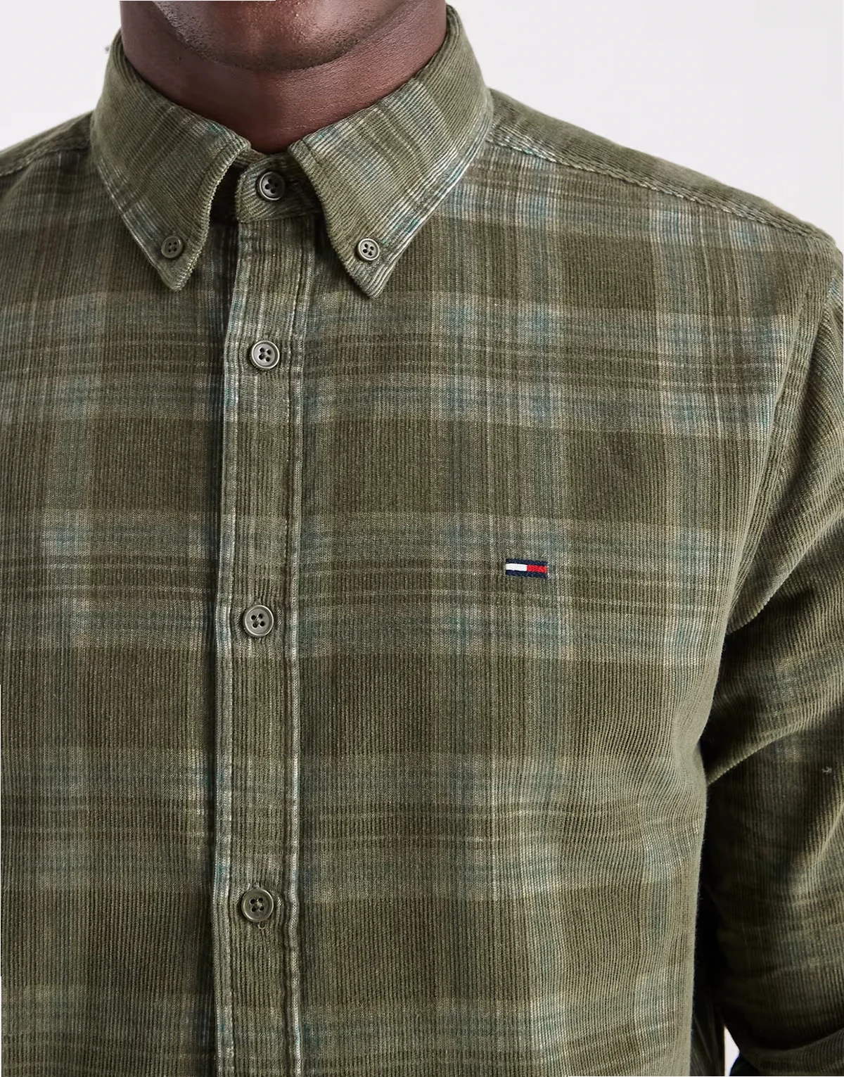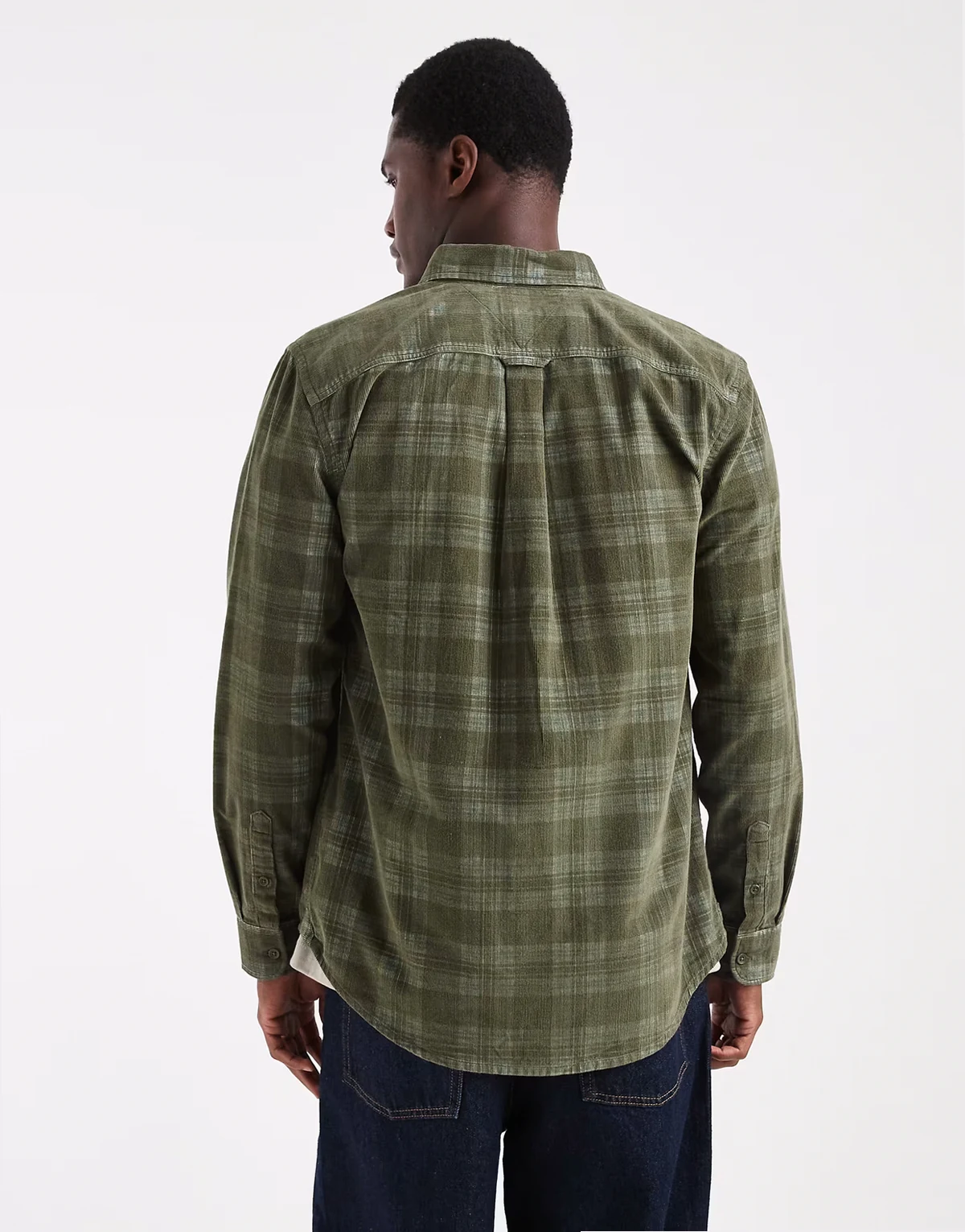– Ciemnozielona sztruksowa koszula w kratę