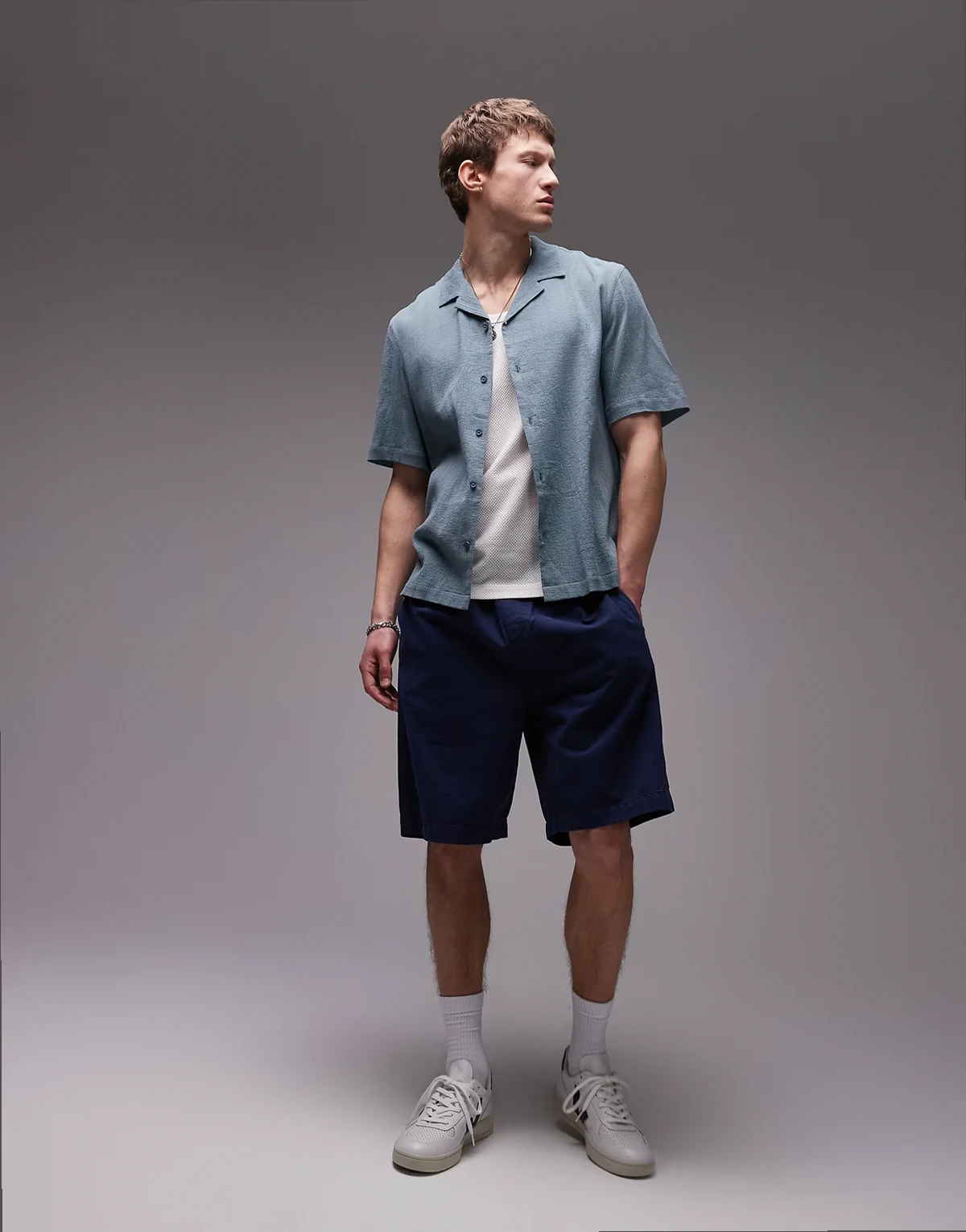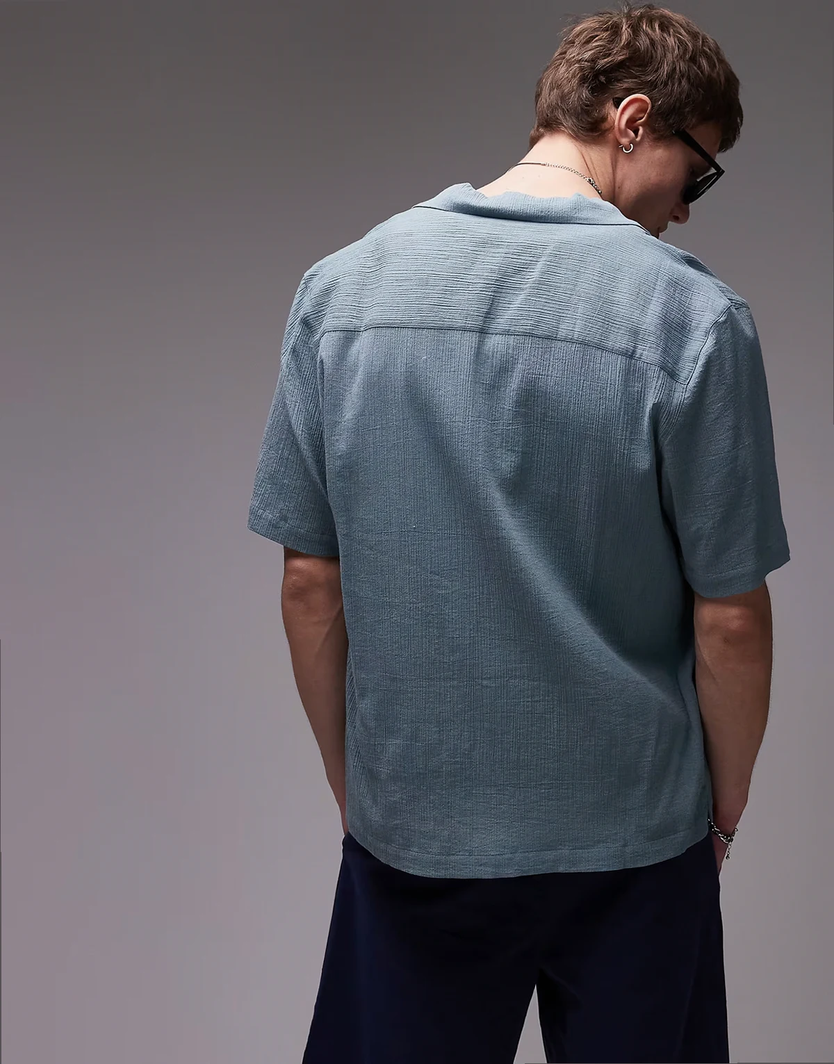 – Niebieska pudełkowa koszula oversize ze zdobieniem