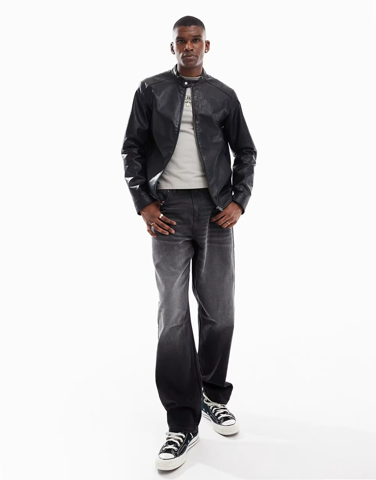 – Czarna kurtka racer z imitacji skóry