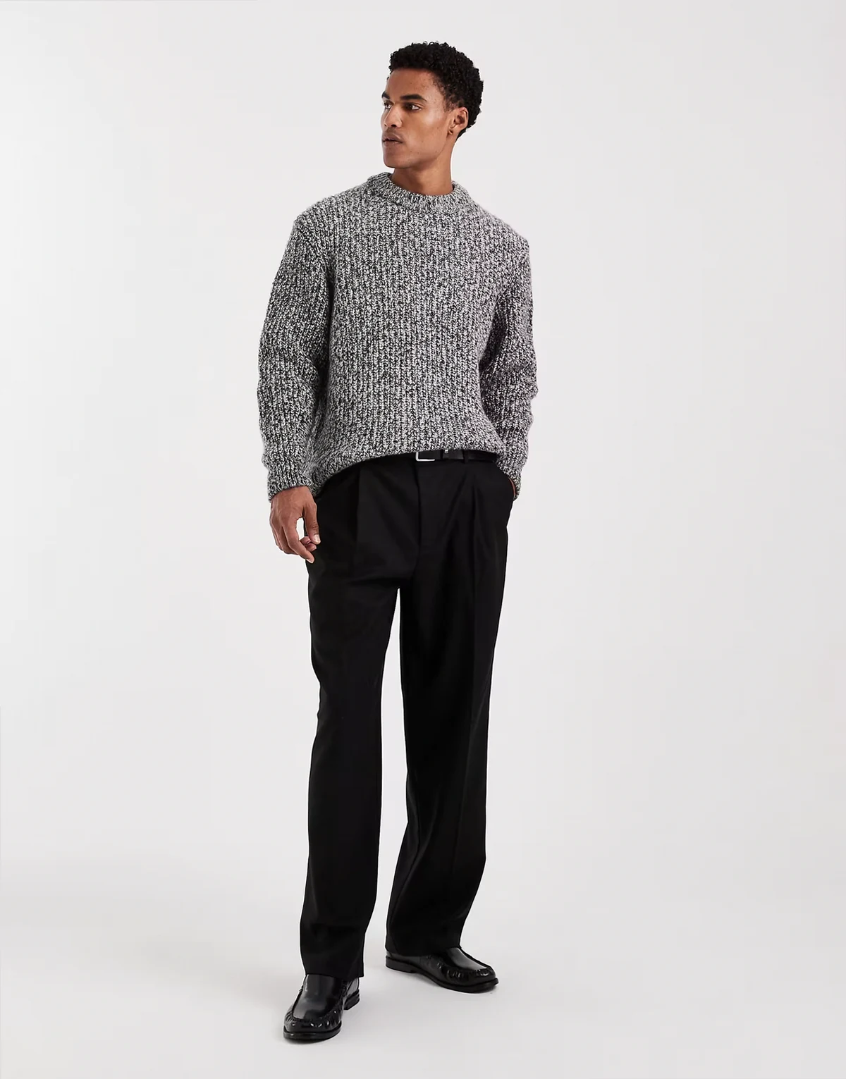 – Czarny sweter ze skręconej przędzy