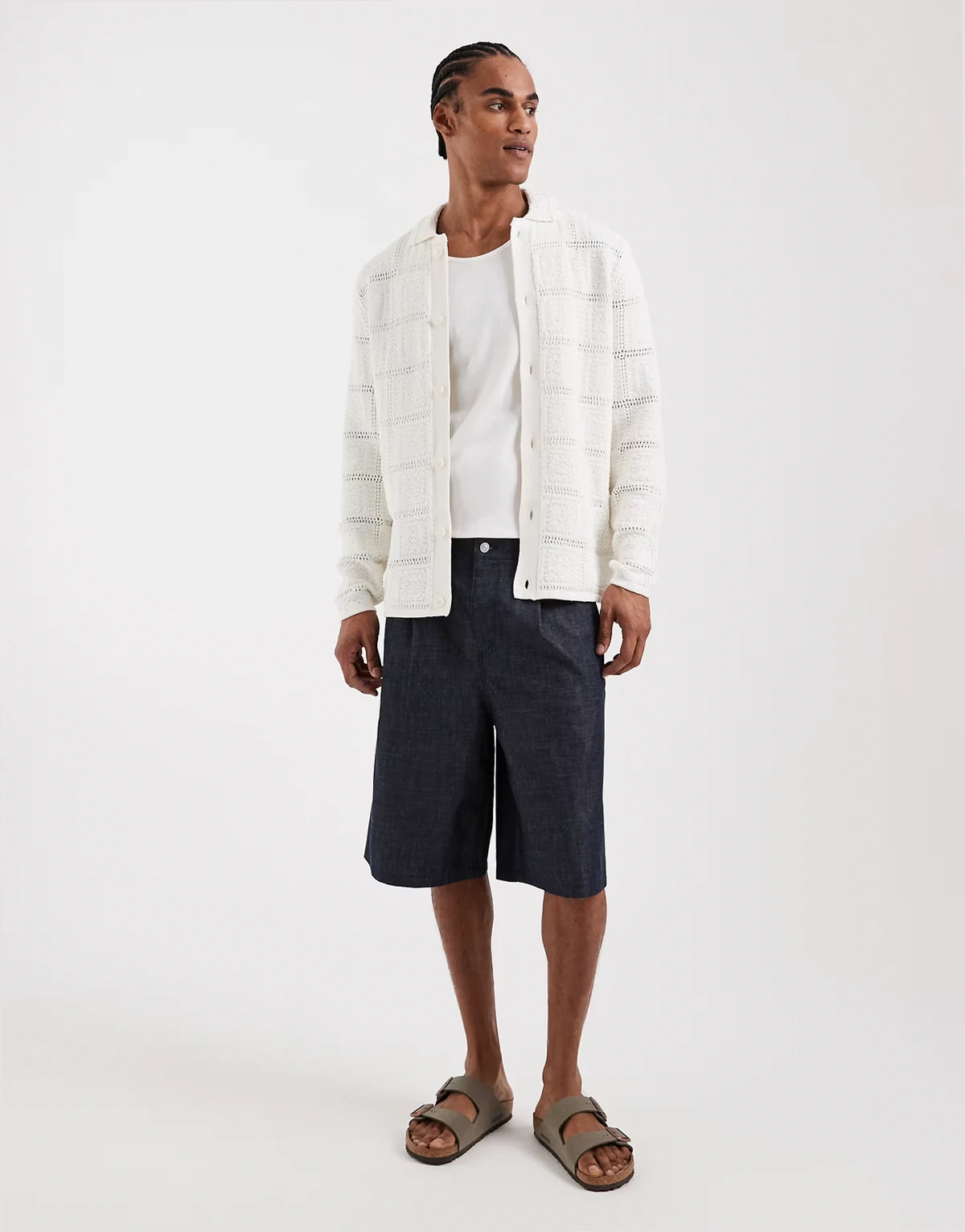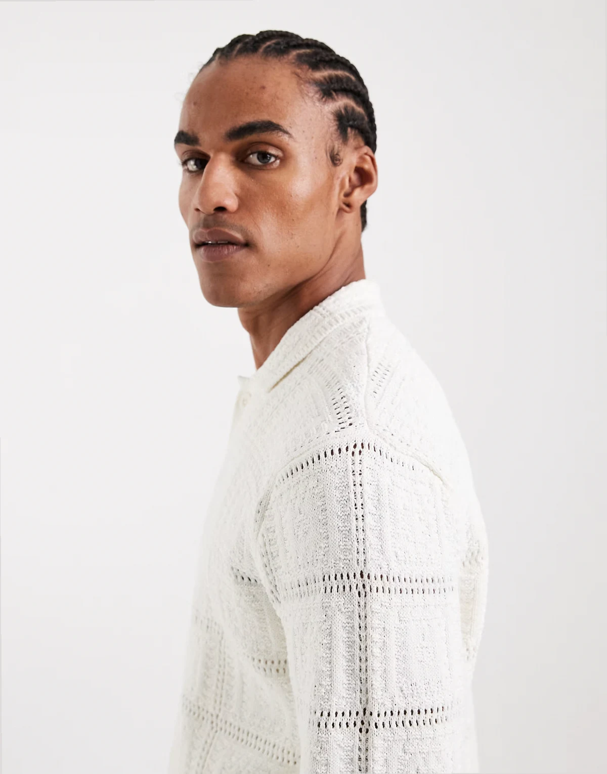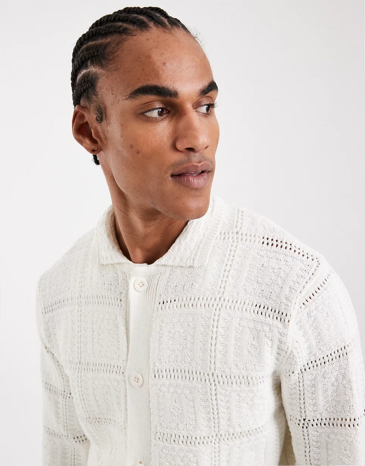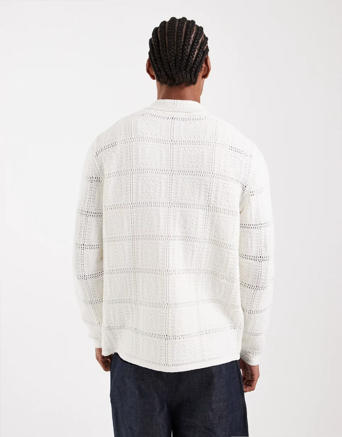 – Biały szydełkowany kardigan o luźnym kroju