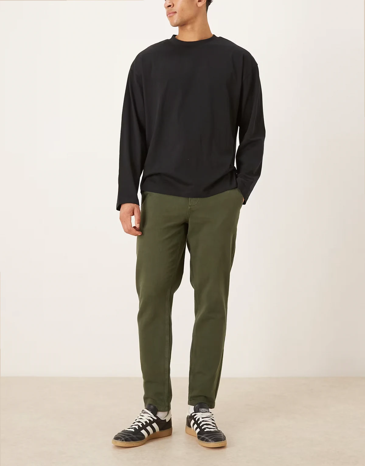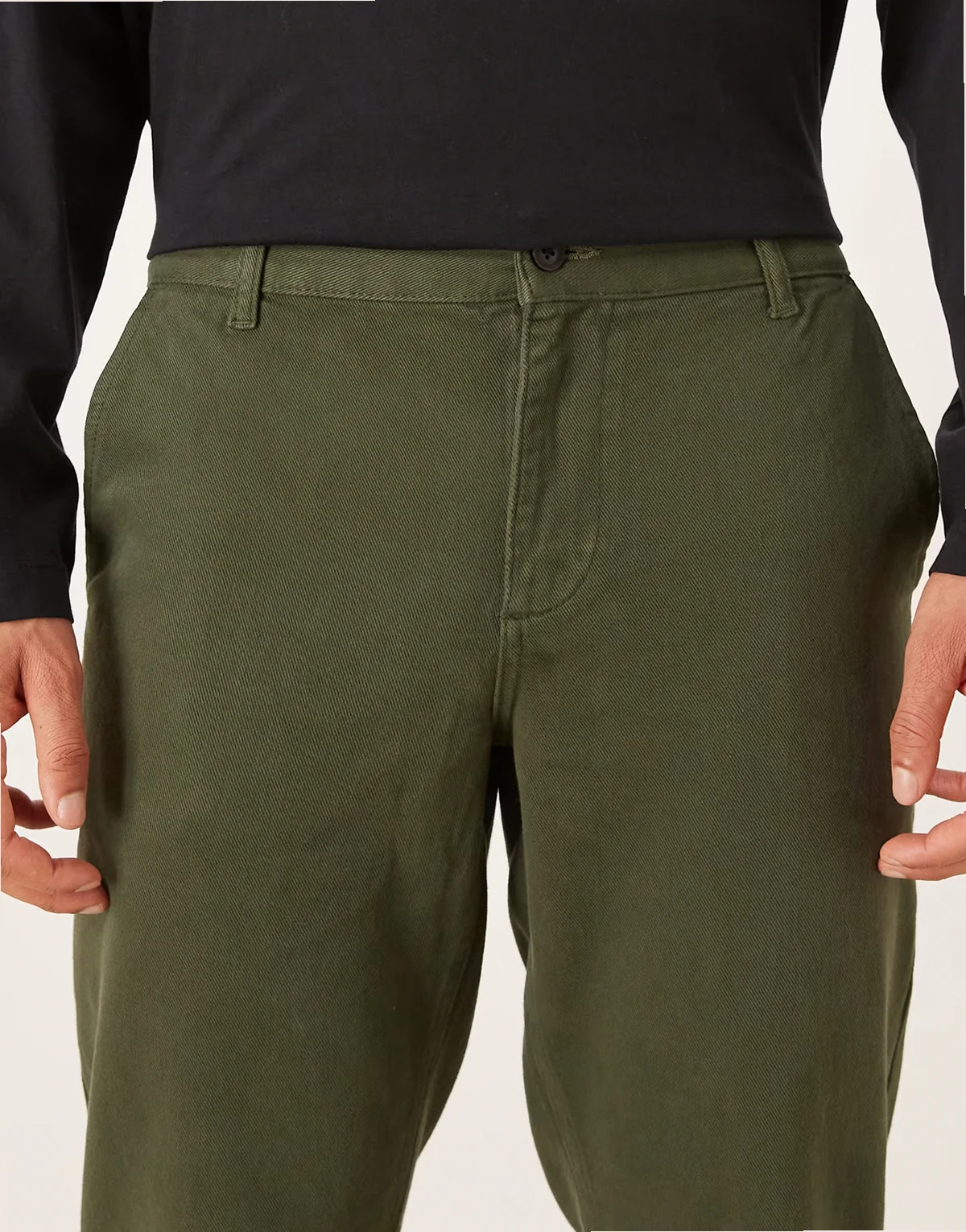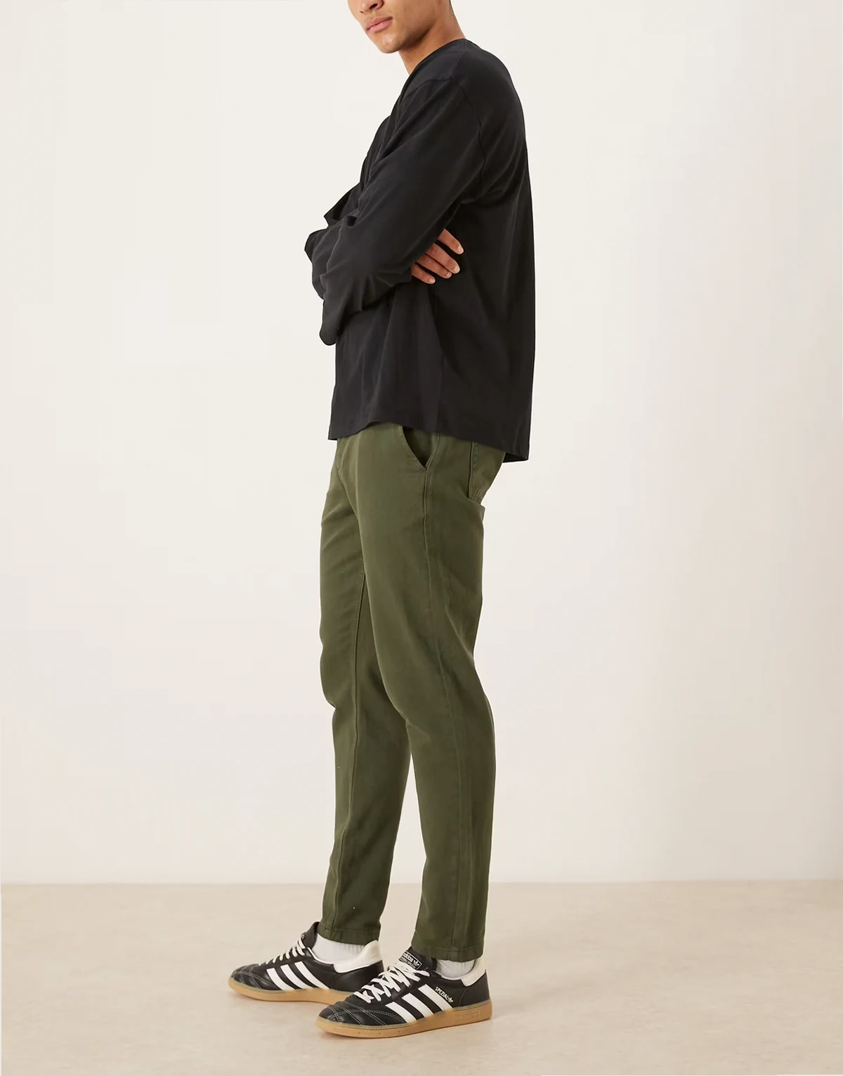– Zwężane chinosy w kolorze khaki