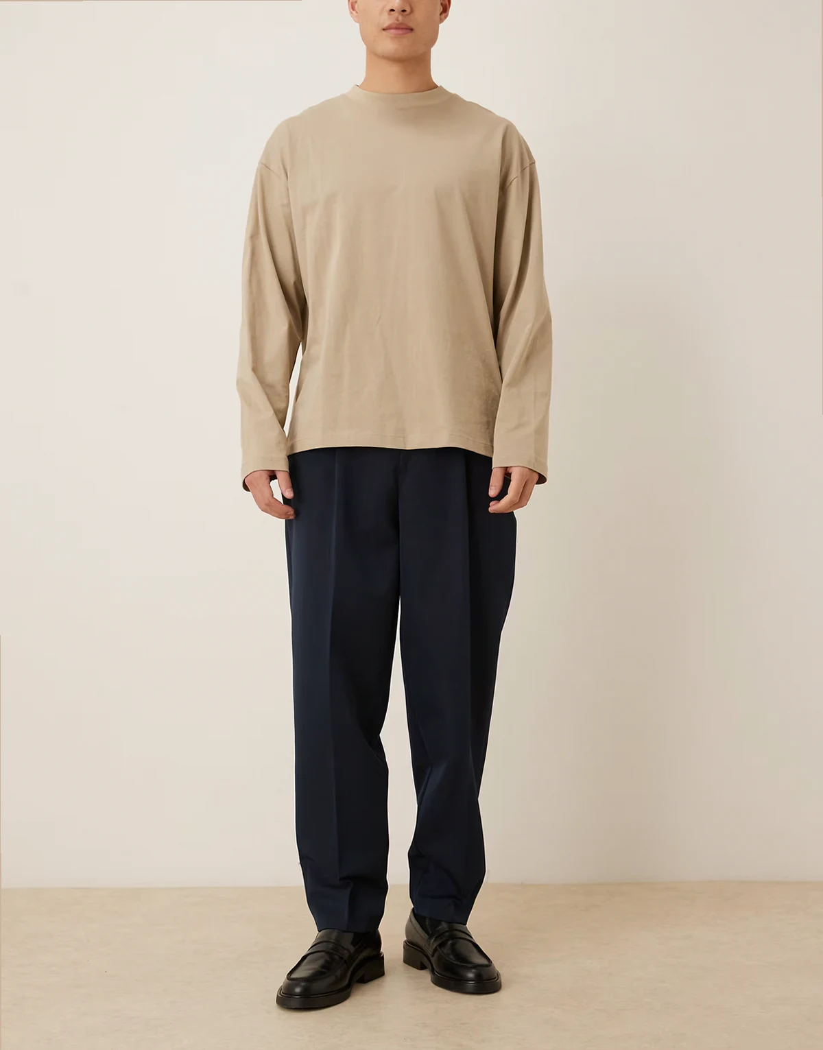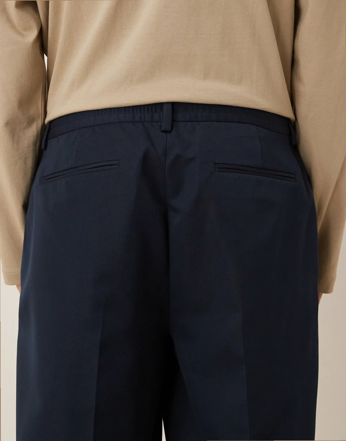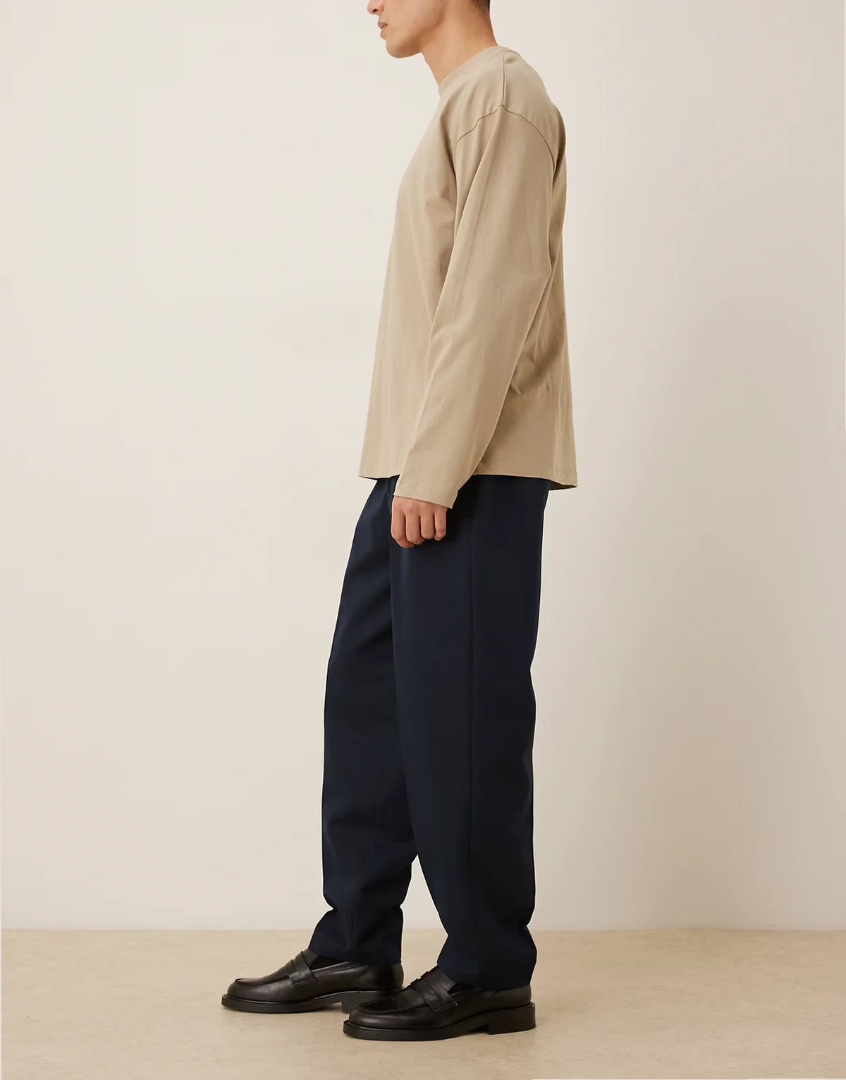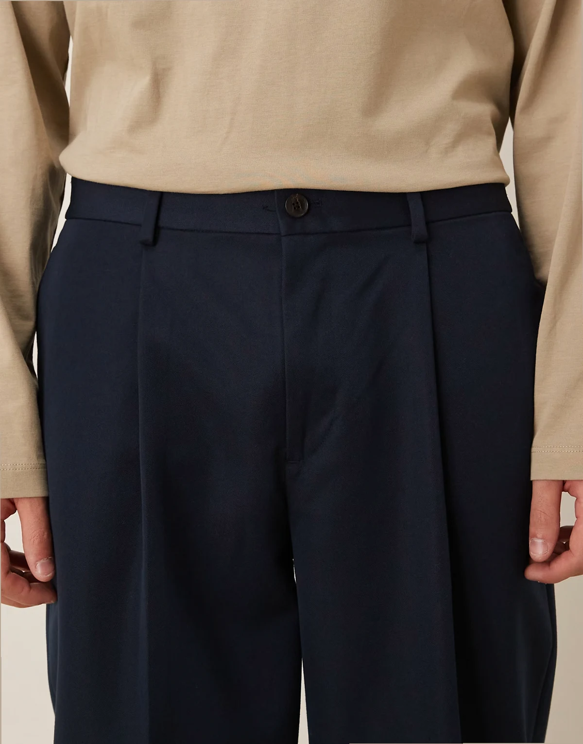 – Eleganckie zwężane spodnie oversize z elastyczną talią w granatowym kolorze