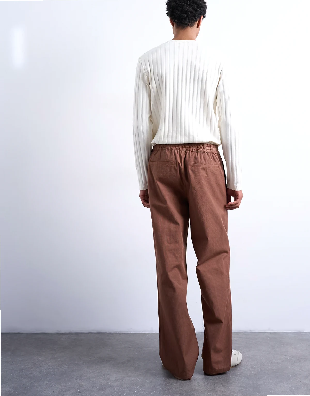 Te spodnie zostały uszyte z miękkiej tkaniny w kratkę. Są ściągane na sznurek w talii, mają funkcjonalne kieszenie i krój baggy.