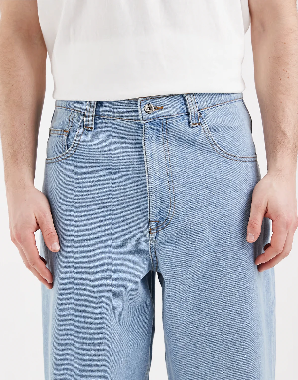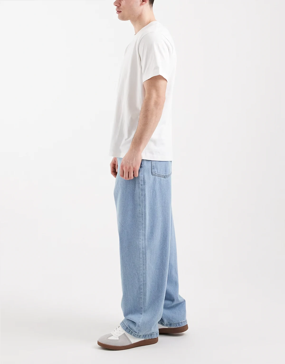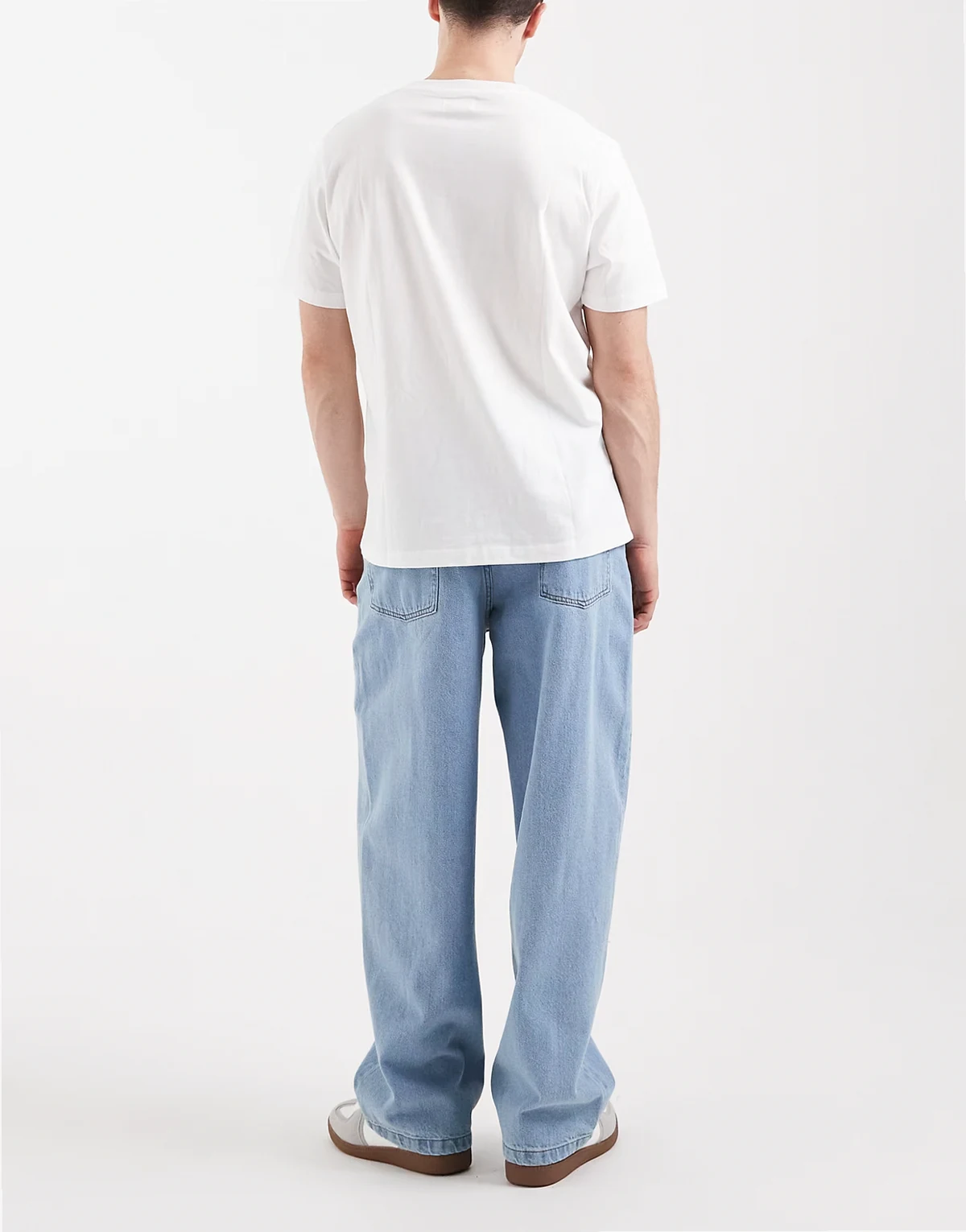 – Jasnoniebieskie luźne jeansy o prostym kroju