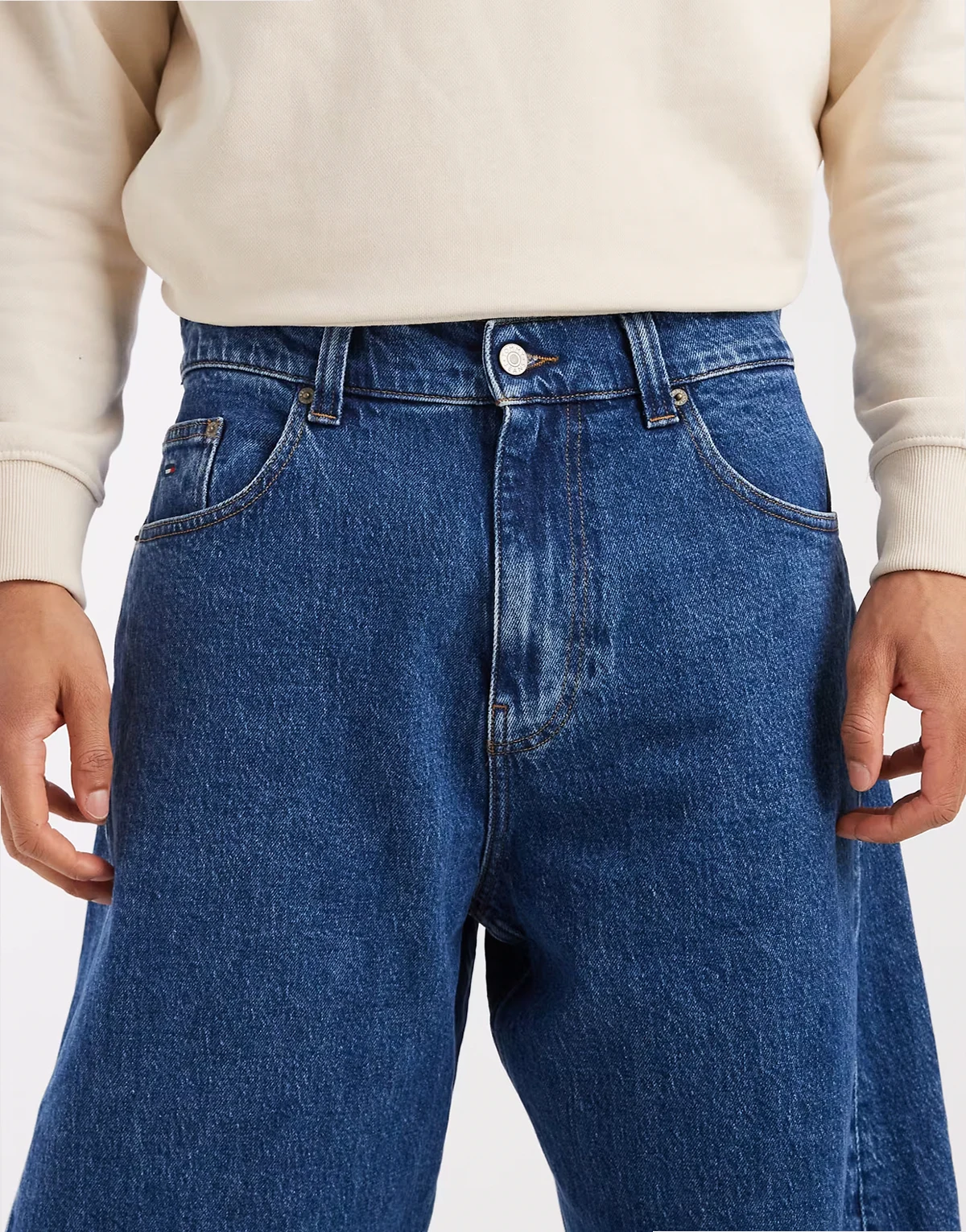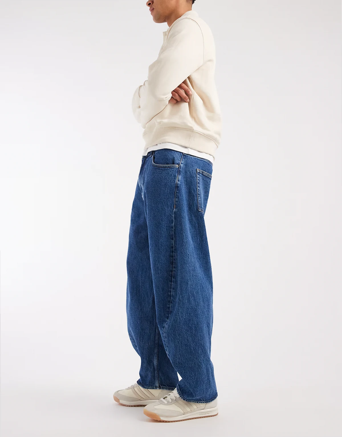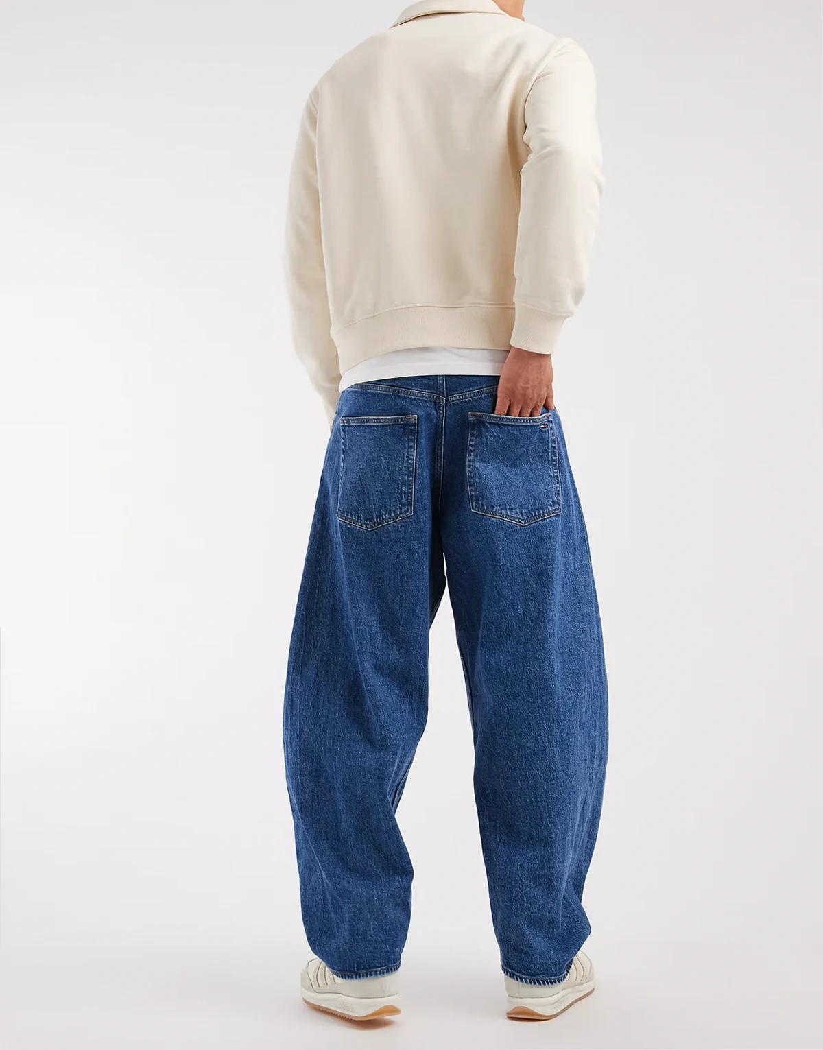 – Ashton – Niebieskie jeansy z baryłkowymi nogawkami