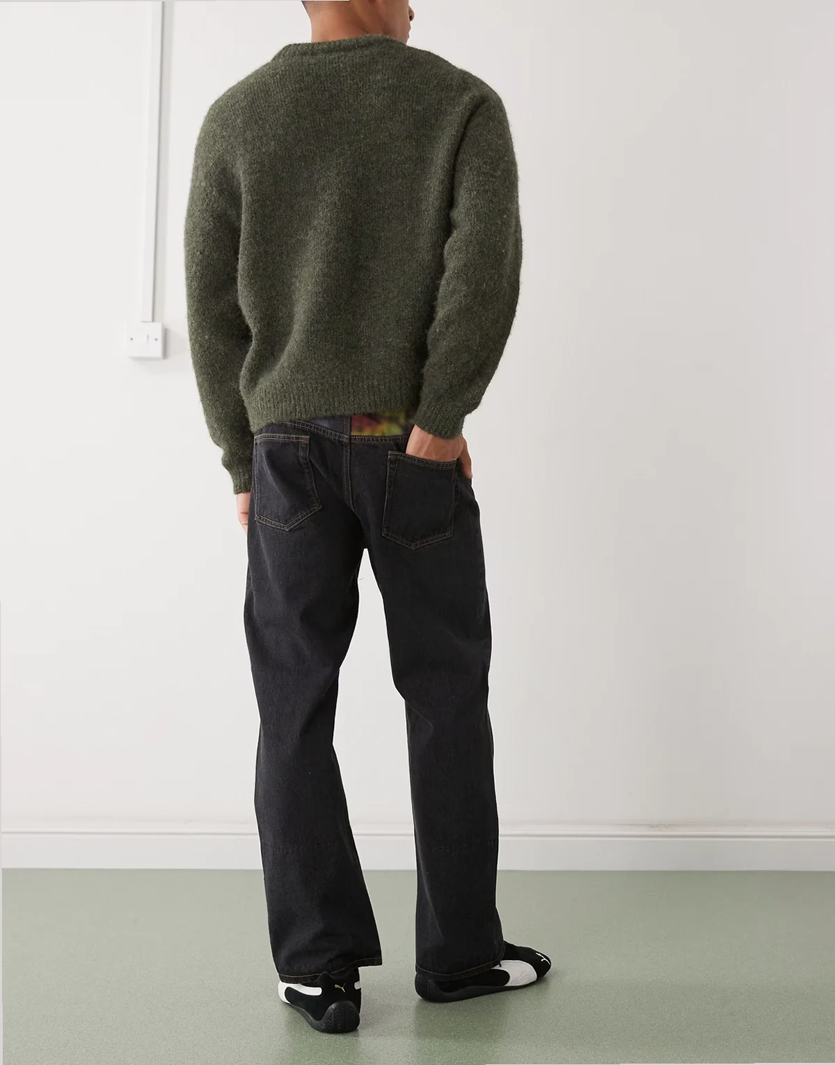 – Czarne jeansy ze wzorem